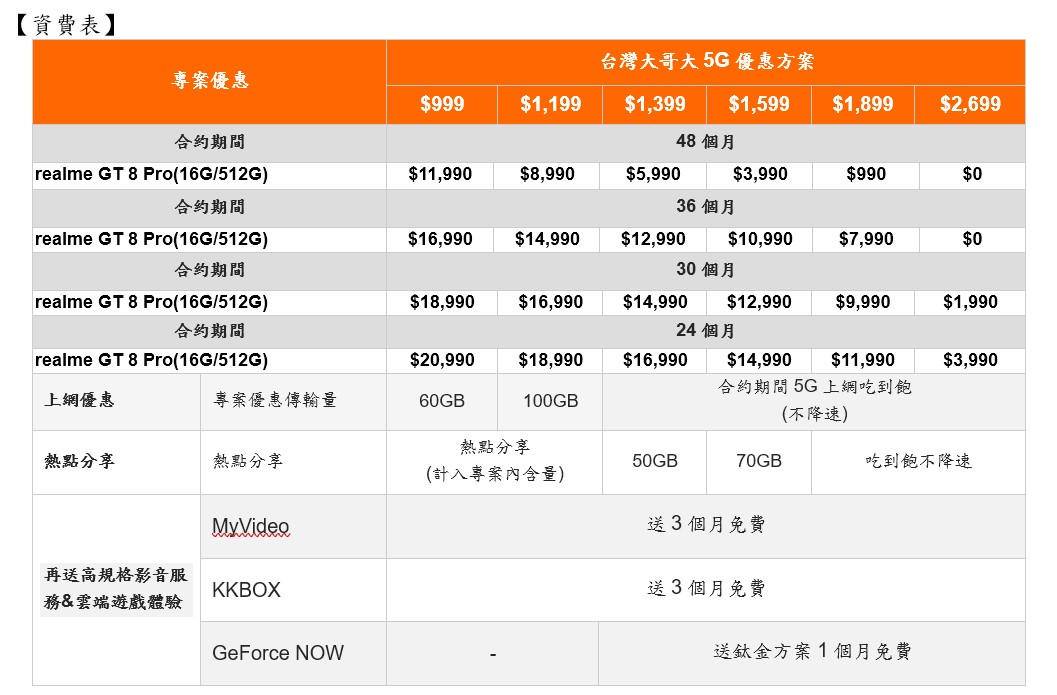 台灣大電信獨賣世界首款RICOH聯名realme GT 8 Pro 資費表在這