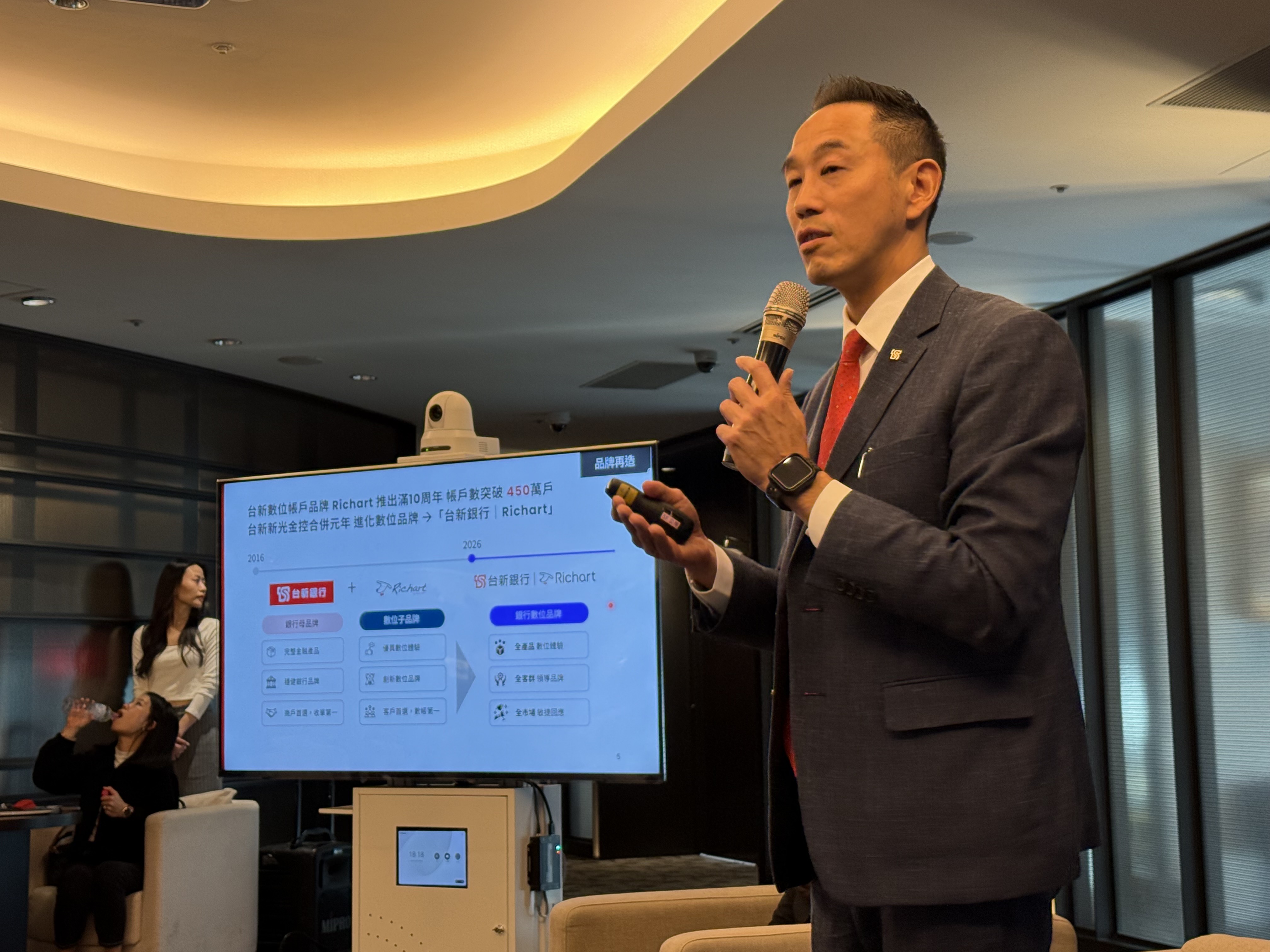 黃天麟(如下圖,記者李錦奇攝影)補充,Richart上市10週年,帳戶突破450萬戶,未來,不只服務Richart客戶,更希望服務全客群。