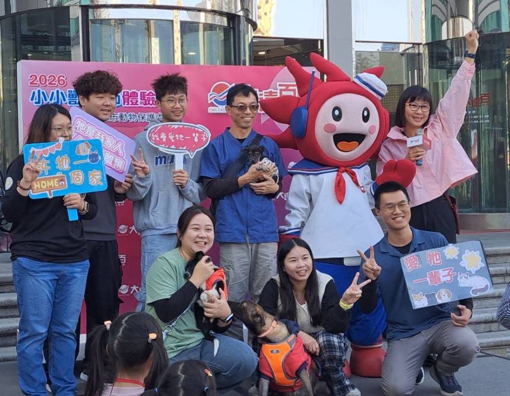 為深化動物保護觀念、為收容所毛孩子尋找溫暖歸宿,高雄市動物保護處日前攜手高雄大遠百,舉辦2026年首場「雄愛毛孩認養會」,並提前歡慶1月6日獸醫師節。活動現場除安排待認養犬貓與民眾近距離互動,更規劃「小小獸醫師闖關活動」,吸引超過30組親子家庭熱情參與,在歡笑中體驗照護動物的責任與溫度,氣氛溫馨熱鬧。