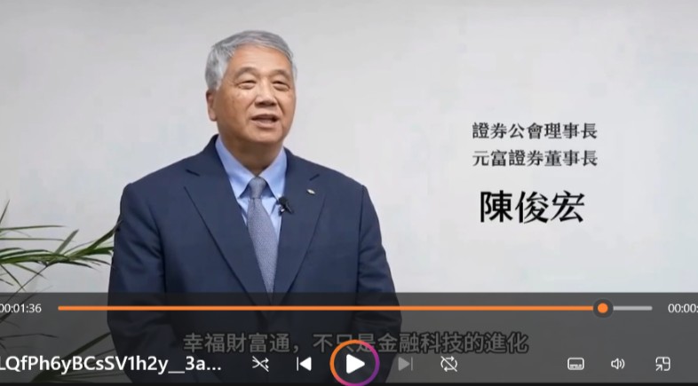 券商公會近日發現有不法集團利用深偽(Deepfake)技術,仿造公會理事長陳俊宏的聲音與影像(如下圖,券商公會提供),以所謂「高頻交易系統」為核心的「幸福財富通」,標榜能精準追蹤資金流向、即時捕捉主力動向等話術詐騙民眾。