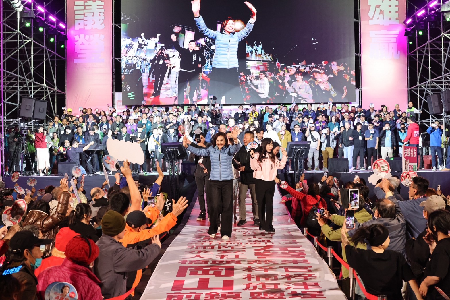 圖說:邱議瑩選前之夜,小英之友會三位總會長現身相挺,逾500位百工百業代表、上百位議員里長現身。(圖片來源:邱議瑩辦公室提供)