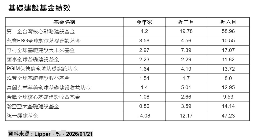 王翔慧表示,從基礎建設指數的個別產業來看,同樣可明顯看出電力相關產業持續受到市場資金青睞,分析MSCI私人基建資產指數個別產業近3年年化報酬率,以電廠14.3%拔得頭籌,其次為數位基建、輸電與配電同為12.1%,再來才是機場、交通、再生能源等,報酬率在7.9%至11.7%不等,顯見與AI和電力相關的基礎建設,已成為基建投資重心所在。