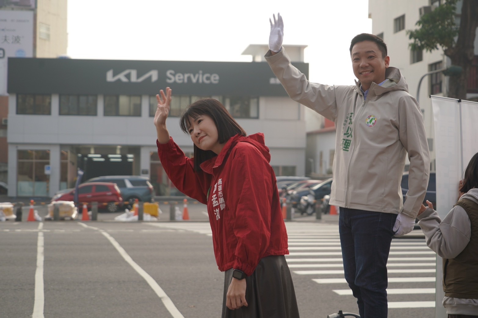 同樣出身陳其邁市長團隊的年輕世代民意代表,今早一同現身街頭向市民問好。高雄市三民區最年輕的市議員鄭孟洳,與曾任全國最年輕青年局長、現投入左營楠梓市議員選舉的張以理,26日共同站在明誠、民族路口,向來往民眾拜票爭取支持。