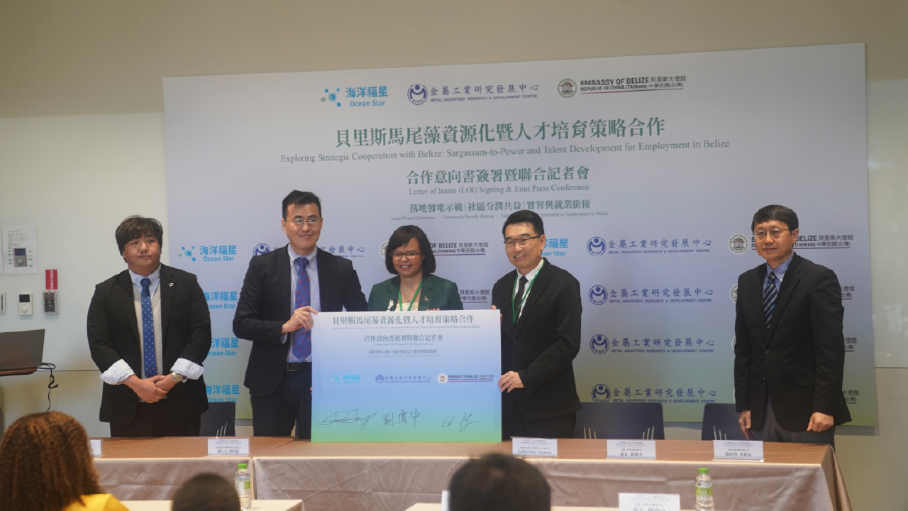 面對加勒比海地區日益嚴峻的馬尾藻(Sargassum)擱淺與腐敗問題,海洋福星生物科技股份有限公司今(4)日與貝里斯大使館、台灣金屬工業研究發展中心(MIRDC)共同舉辦「貝里斯馬尾藻資源化暨人才培育策略合作—合作意向書簽署暨聯合記者會」,三方並正式簽署合作意向書(LOI),宣示啟動「落地發電示範|社區分潤共益|實習與就業銜接」三大合作主軸,推進馬尾藻資源化發電專案與跨國綠能人才培育落地。這也是全球首創將馬尾藻轉化為發電燃料的綠能計畫案。