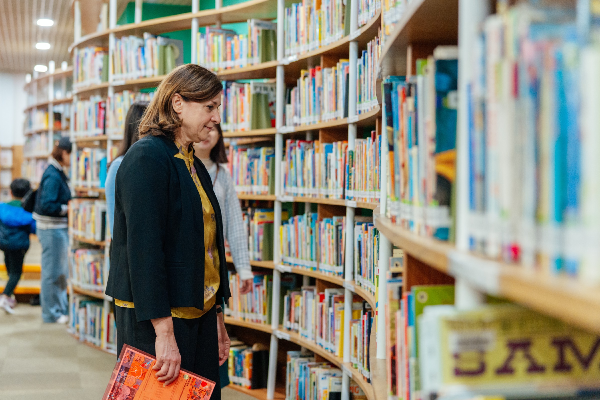 ↑圖說:義大利波隆那書展插畫展負責人德安娜‧貝露蒂(Deanna Belluti)參訪高市圖國際繪本中心,對館內豐富的國際館藏給予高度評價。(圖片來源:高雄市立圖書館提供)