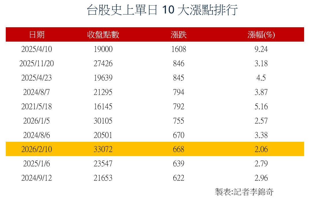 台股創新高33072!收漲668點「史上第八強」 明封關