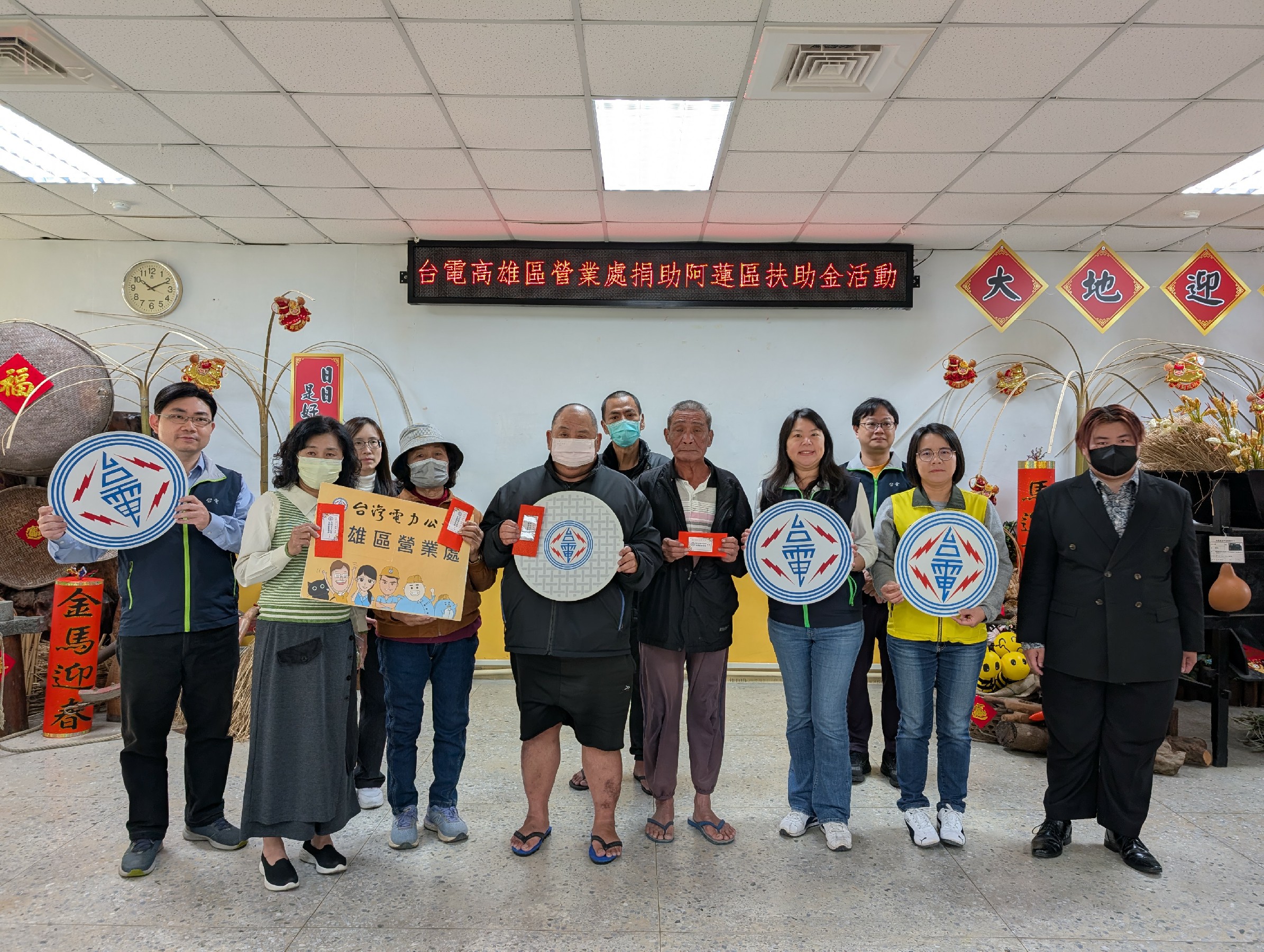 農曆春節將至,台電高雄區處10日在阿蓮區公所協助安排下,由業務副處長許佳玉率隊前往關懷9位因病陷入生活困境的長輩,並致贈生活扶助金,盼在歲末寒冬中送上及時溫暖。阿蓮區公所社會課表示,過往民間善心資源多以物資為主,此次台電提供現金扶助,對長輩而言更具彈性與實際幫助,「就像收到年節紅包」,讓人倍感溫馨。