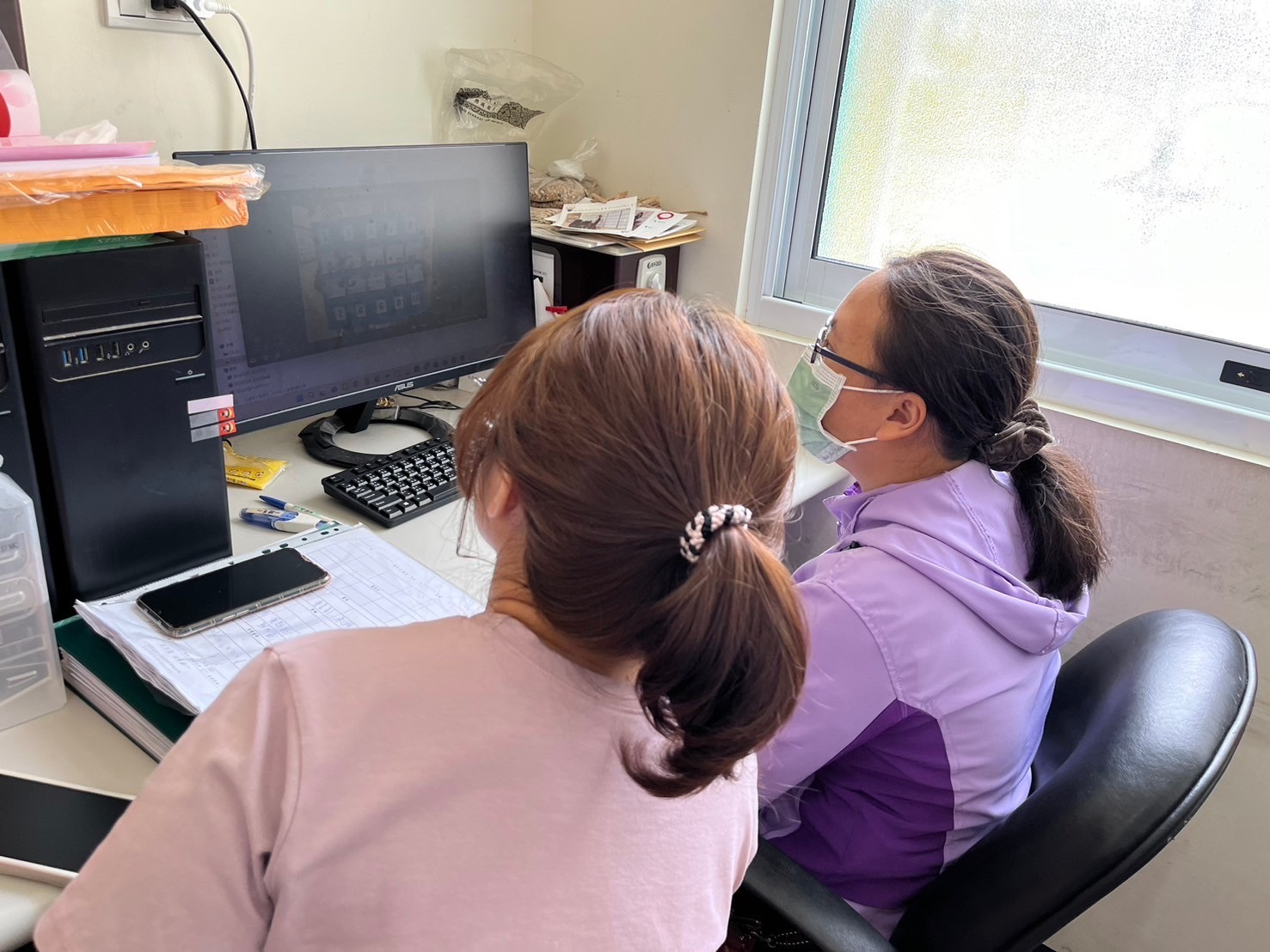 ↑圖說:會員與職員共同學習文書,共同完成每日工作日任務。(圖片來源:高雄市社會局提供)