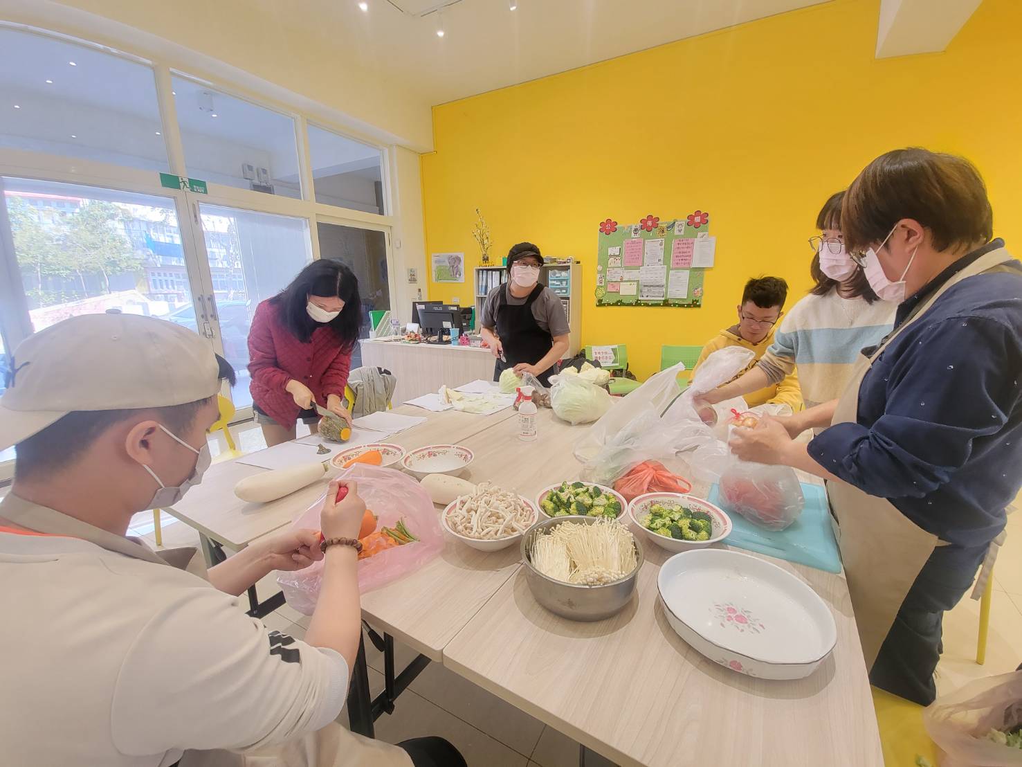 ↑圖說:一人一料理,圍爐一起來!在笑聲中準備年菜,過年就是要這麼暖。(圖片來源:高雄市社會局提供)
