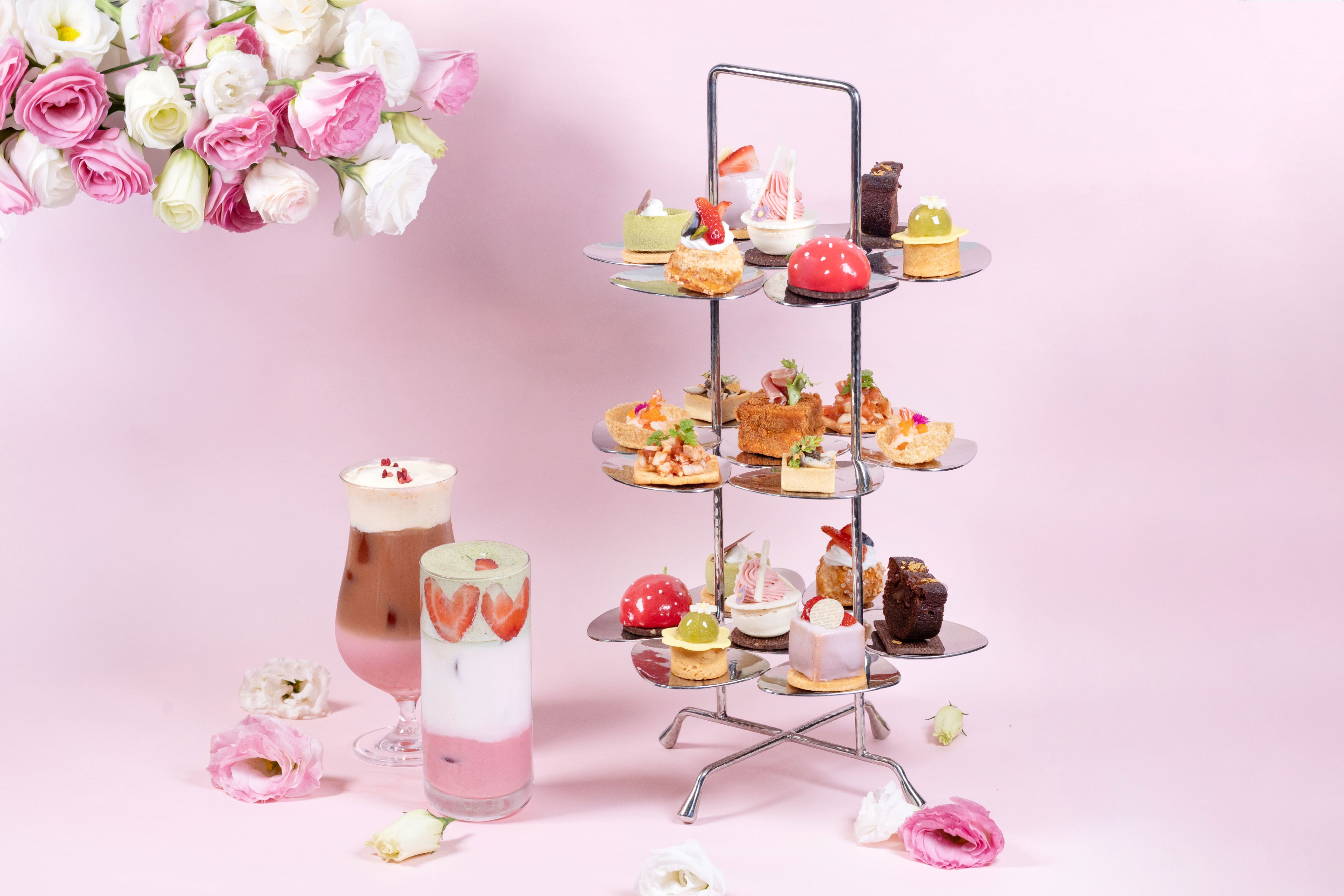 ↑圖說:皇怡咖啡廳推出「春日莓好雙人午茶」,以精緻層架呈現 7 款甜點與 4 款鹹點,打造兼具視覺與味覺的午茶體驗。(圖片來源:高雄萬豪酒店提供)