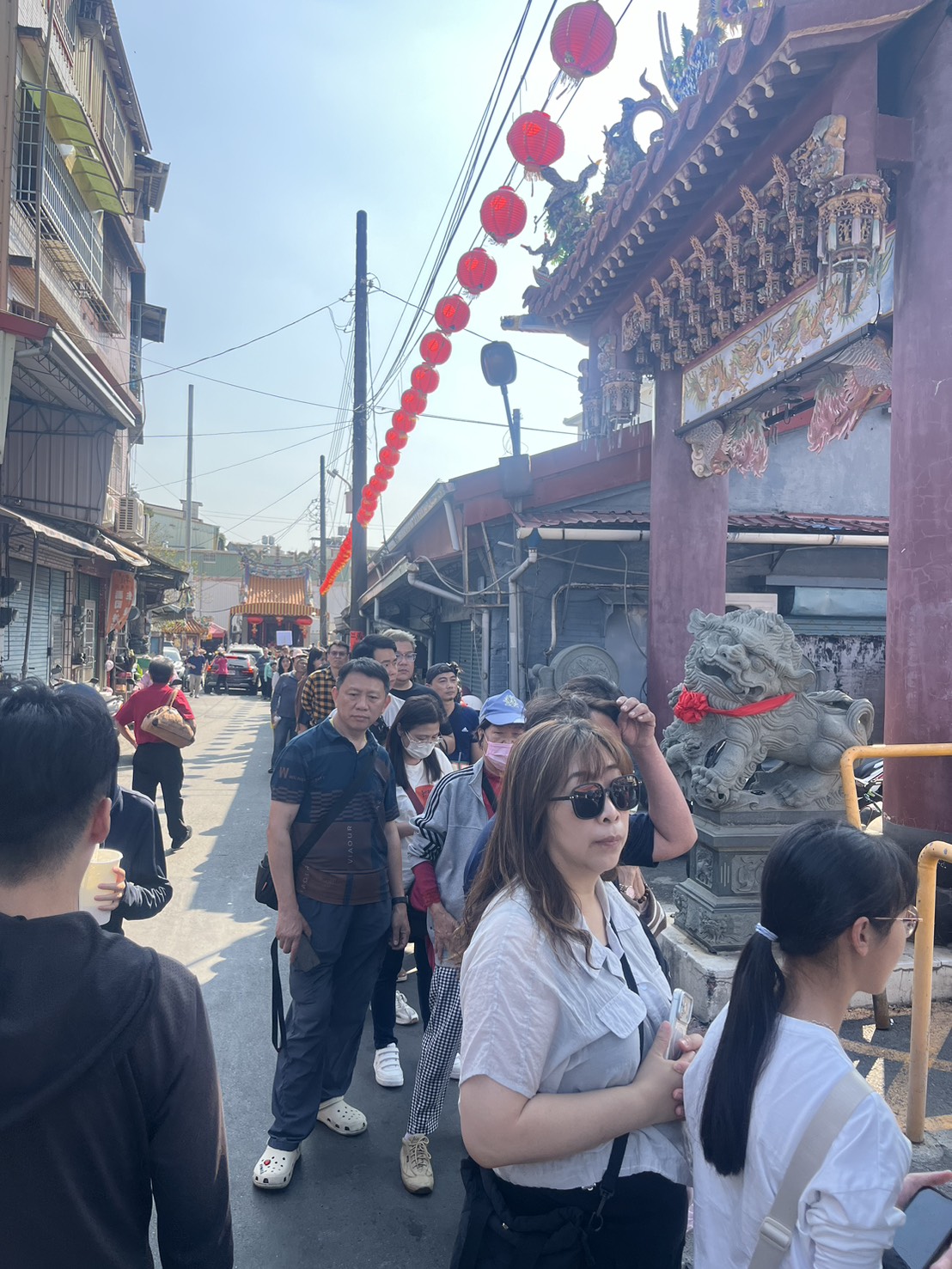 下午陳其邁率領市府團隊,繼續前進旗美地區參拜發小紅包,走訪旗山天后宮、美濃天后宮及旗山鯤洲宮。旗山、美濃觀光景區聚集大批走春人潮,商圈人氣暢旺、熱鬧滾滾。現場民眾依序排隊合照,人潮也是滿滿,旗山天后宮除了廟前人潮,隊伍排到牌樓之外轉彎,人氣滿滿。其中更有一位 104 歲的人瑞長輩與市長溫馨合影留念,陳其邁也親切致意,祝福長輩福壽安康;此外,更有不少人搶著索取市長簽名,所到之處都受到民眾熱烈歡迎。
