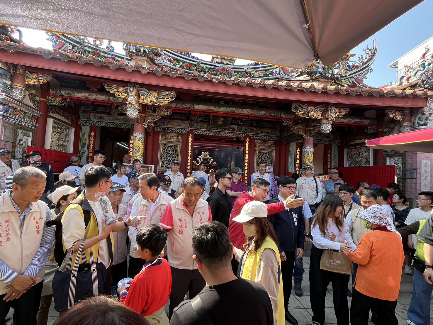 圖說:高雄市長陳其邁走春祈福行程,邱議瑩,許智傑,賴瑞隆陪同。(圖片來源:高雄市政府提供)