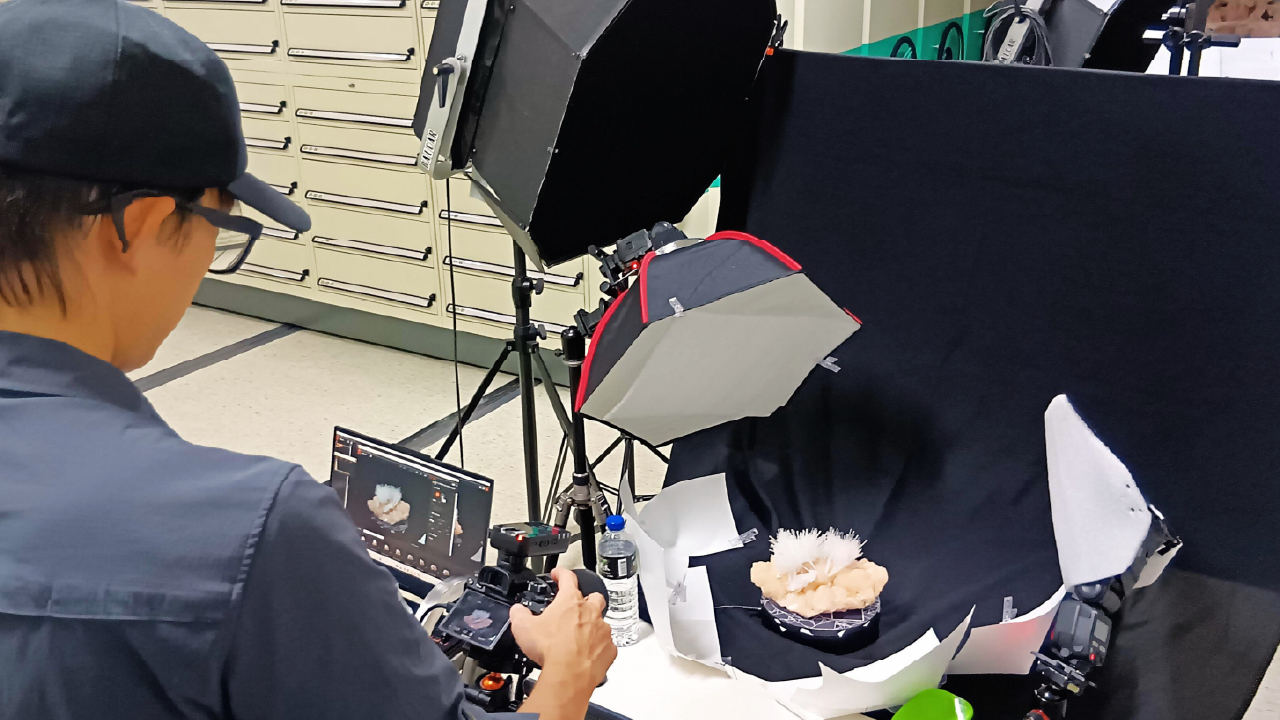 ↑圖說:3DGS透過數百張不同角度的標本影像,細緻重建物體的視覺資訊,並以數百萬個具方向性與色彩資訊的「高斯光點」進行重建,生成可即時互動的立體模型。(圖片來源:國立自然科學博物館提供)