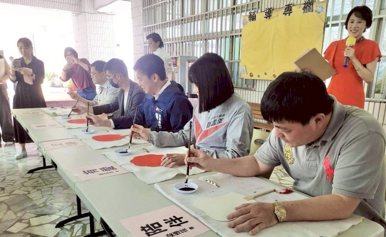 圖說:現場貴賓在象徵「善」與「開展」的扇子上提詞。(圖片來源:高雄市教育局提供)