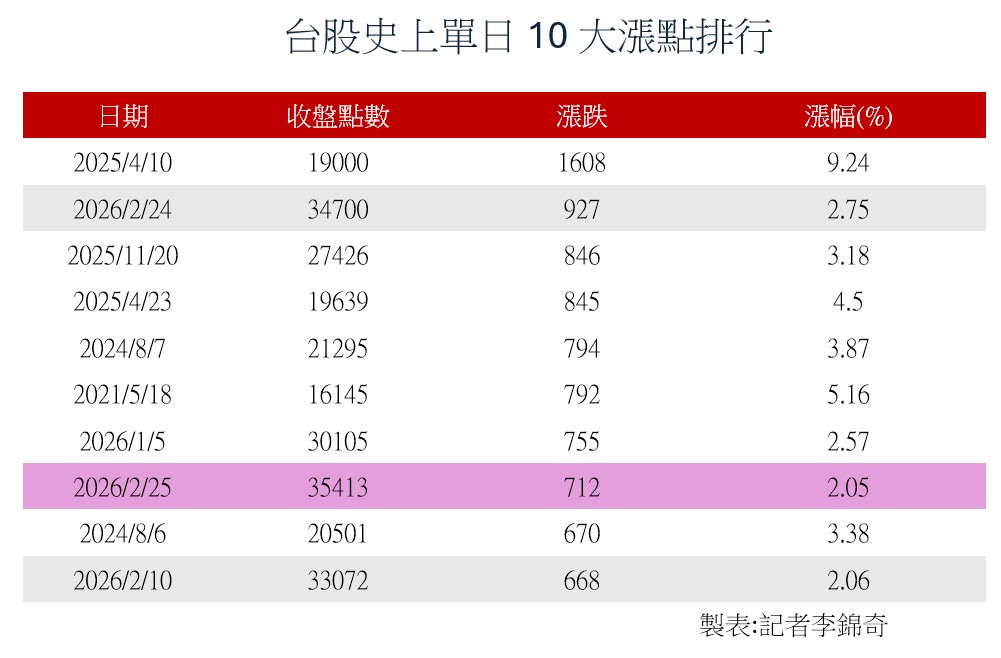 台股飆史上第8大漲點712!創新高35521 法人仍喊多