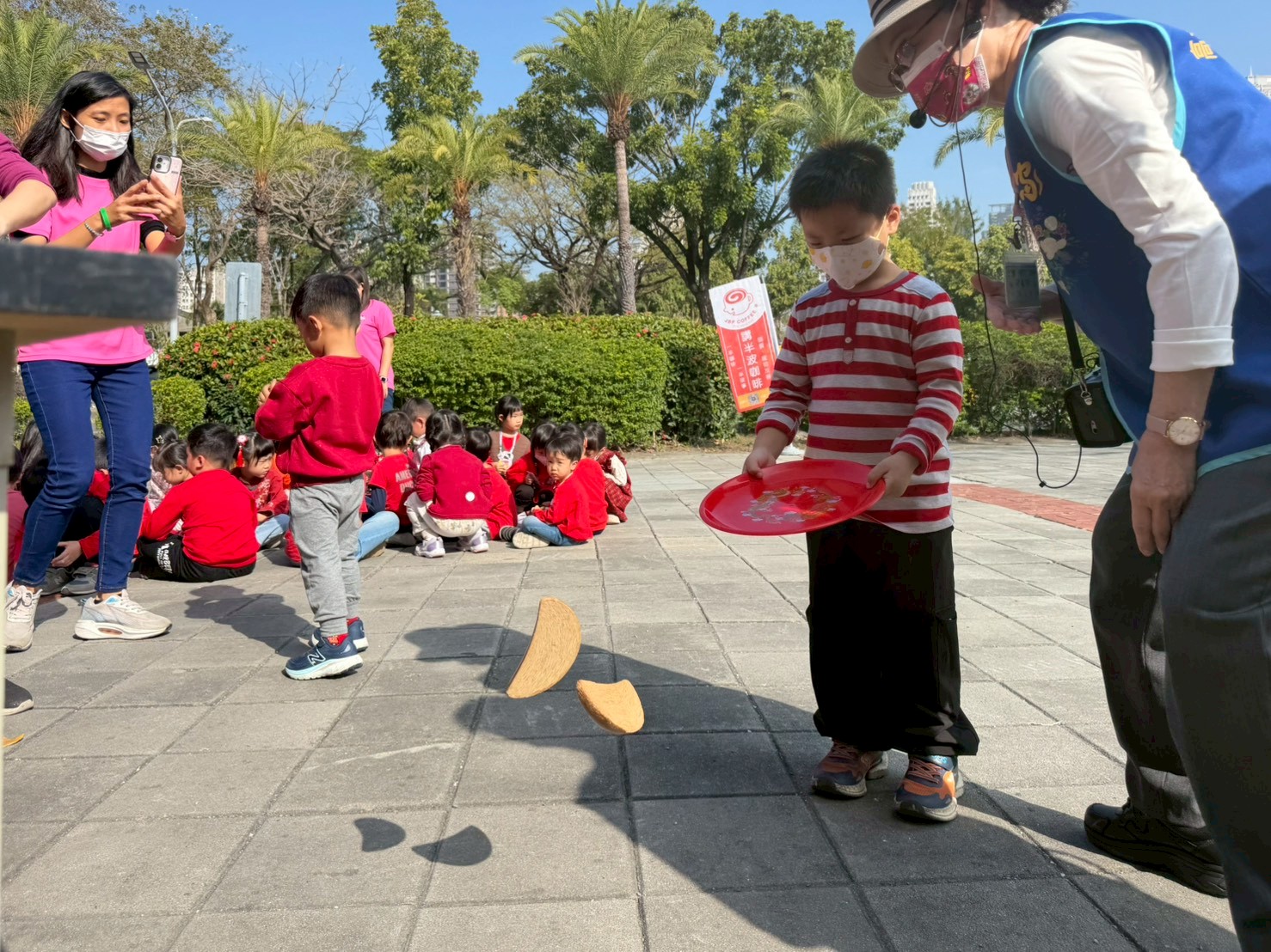 ↑圖說:小朋友擲聖筊換爆米花(圖片來源:高雄市客委會提供)