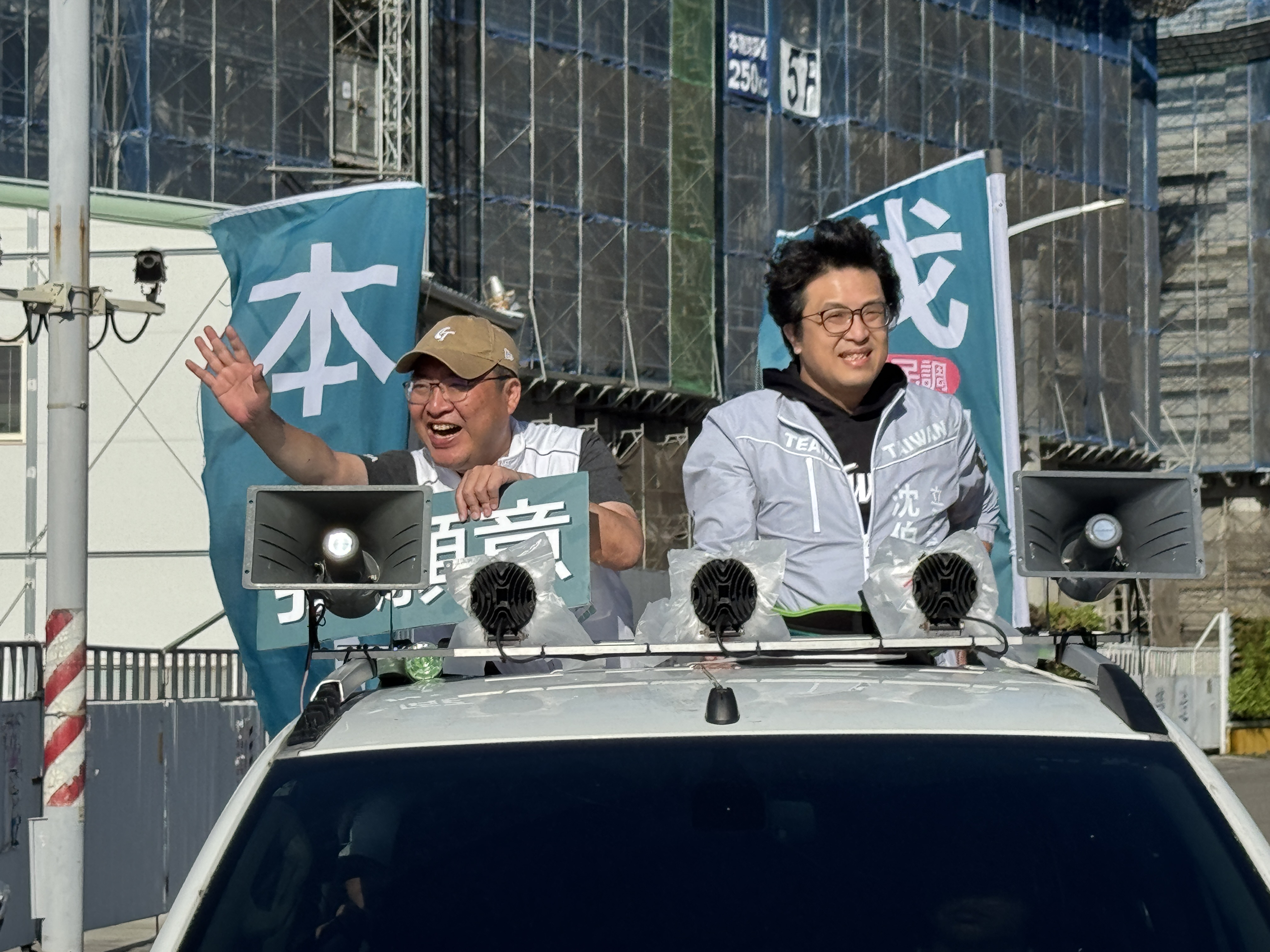 圖說:高雄市初選激烈,立委沈伯洋也特別撥空南下陪同黃彥毓車掃。(圖片來源:黃彥毓辦公室提供)