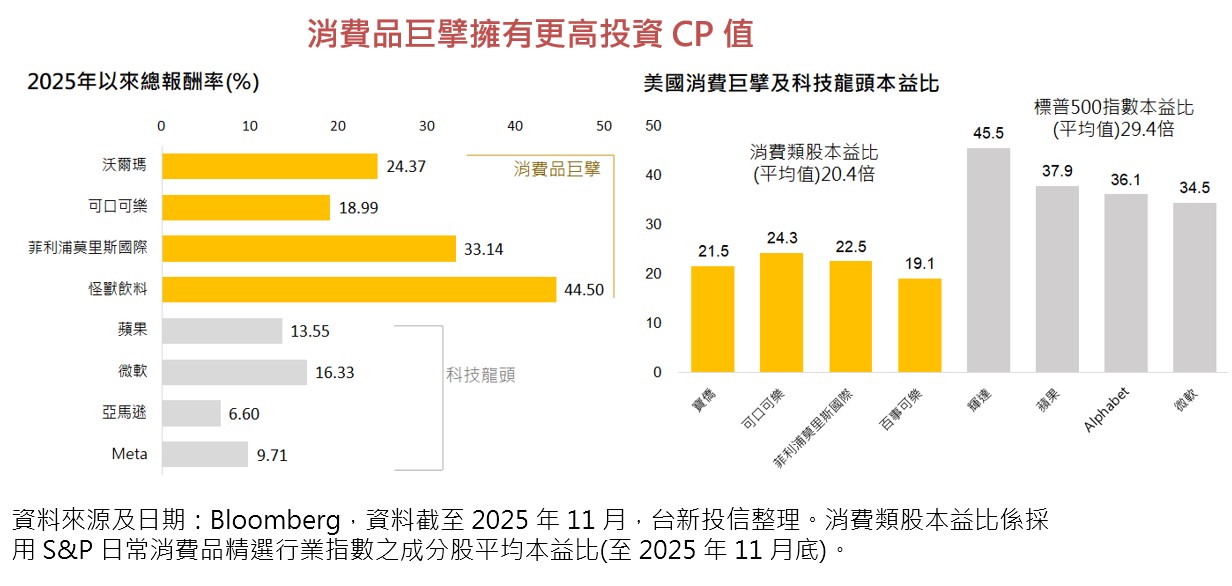另一方面,消費品牌巨擘獲利成長強勁,且整體消費類股本益比約20.4倍遠較標普500指數本益比29.4倍低,擁有更高投資CP值,目前是布局良機。