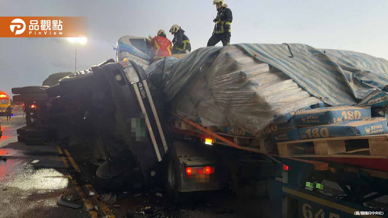 驚!台2線凌晨3大貨車連環撞 曳引車翻覆滑入對向釀1死