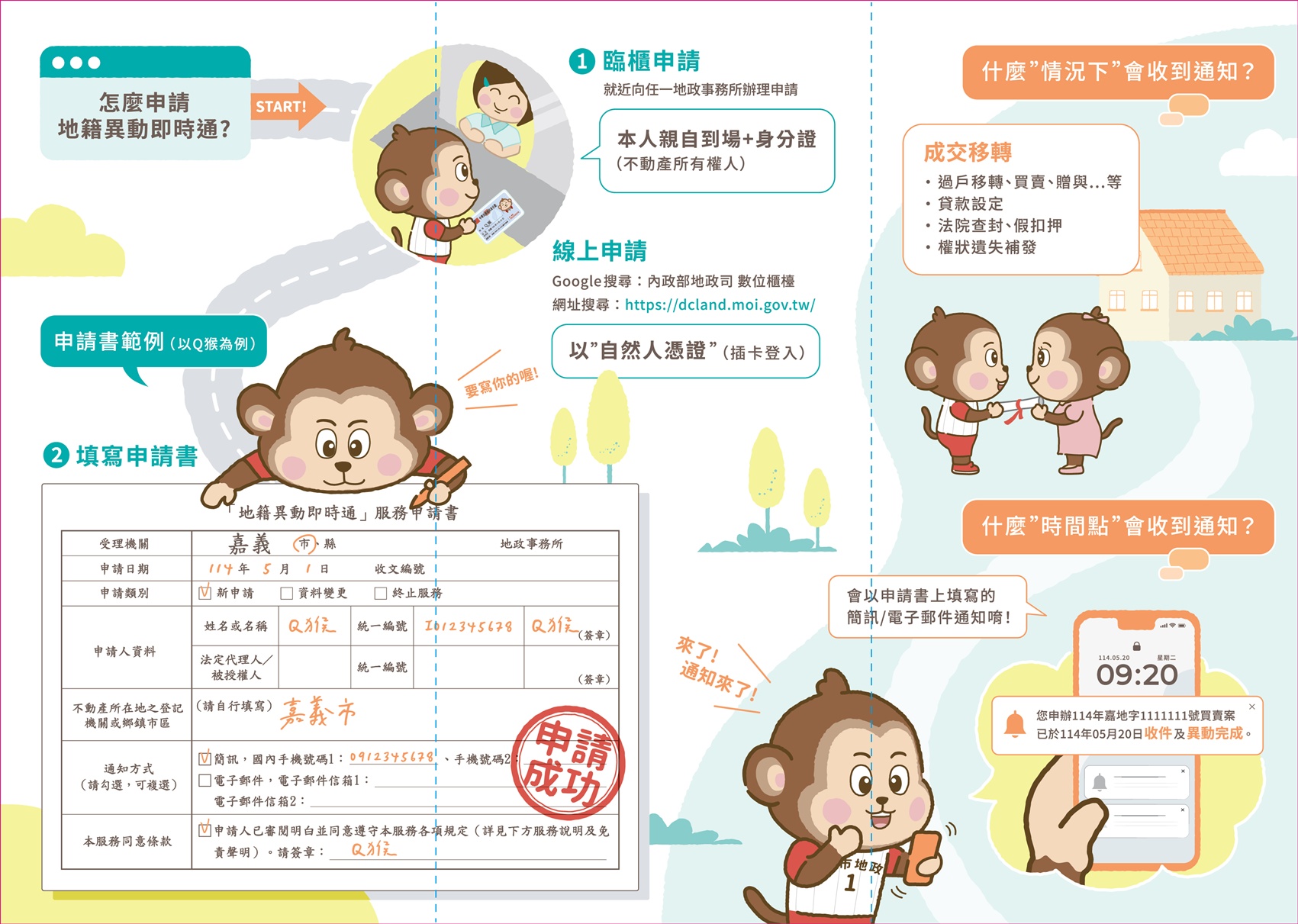 ↑圖說:地籍異動即時通服務完全免費,民眾可透過自然人憑證線上申請,也可攜帶身分證正本至全國任一地政事務所臨櫃辦理。(圖片來源:嘉義市地政處提供)