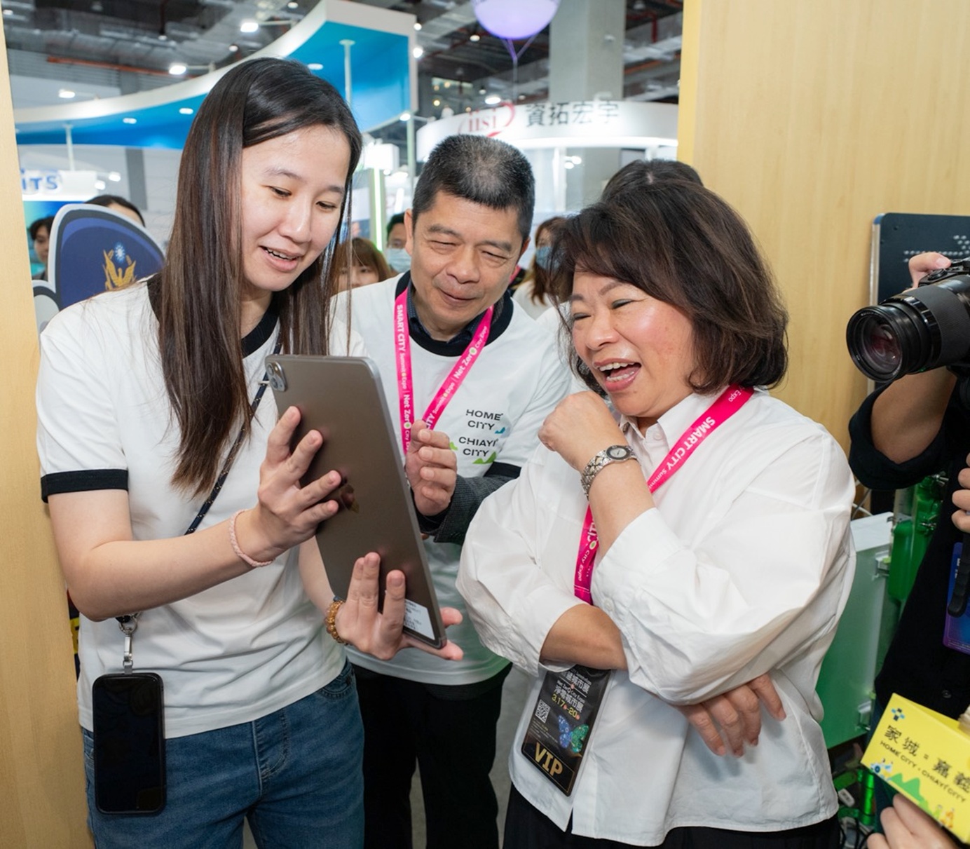 2026智慧城市展於台北南港展覽館熱鬧登場,嘉義市政府主題館以全台首創AR實境互動防詐遊戲《不准騙走我的罐罐!》成功吸引人潮,開展首日即突破2,000人次體驗,成為展場矚目焦點。