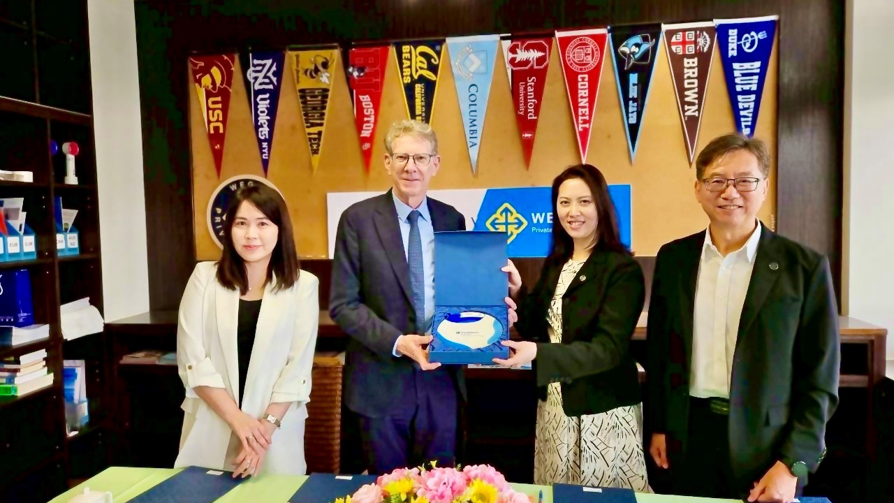 ↑圖說:簽約儀式(左起)Fulbright資深計劃長張純怡、執行長那原道(Randall)、薇閣中小學董事長李許元齡、薇閣中學校長孫明峯。(圖片來源:薇閣中學提供)
