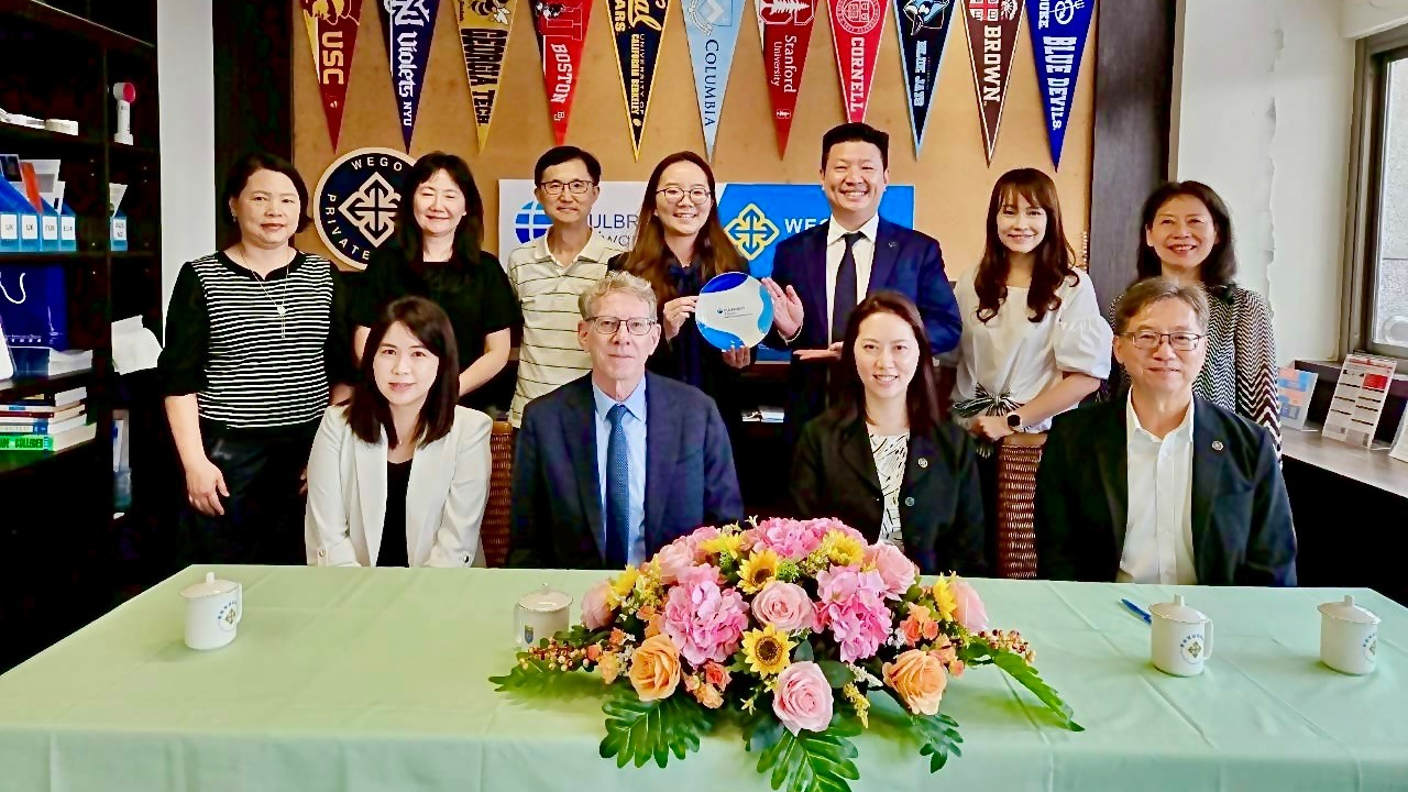 ↑圖說:Fulbright計劃長、執行長、與薇閣中小學董事長、董事、校長及行政團隊合影。(圖片來源:薇閣中學提供)