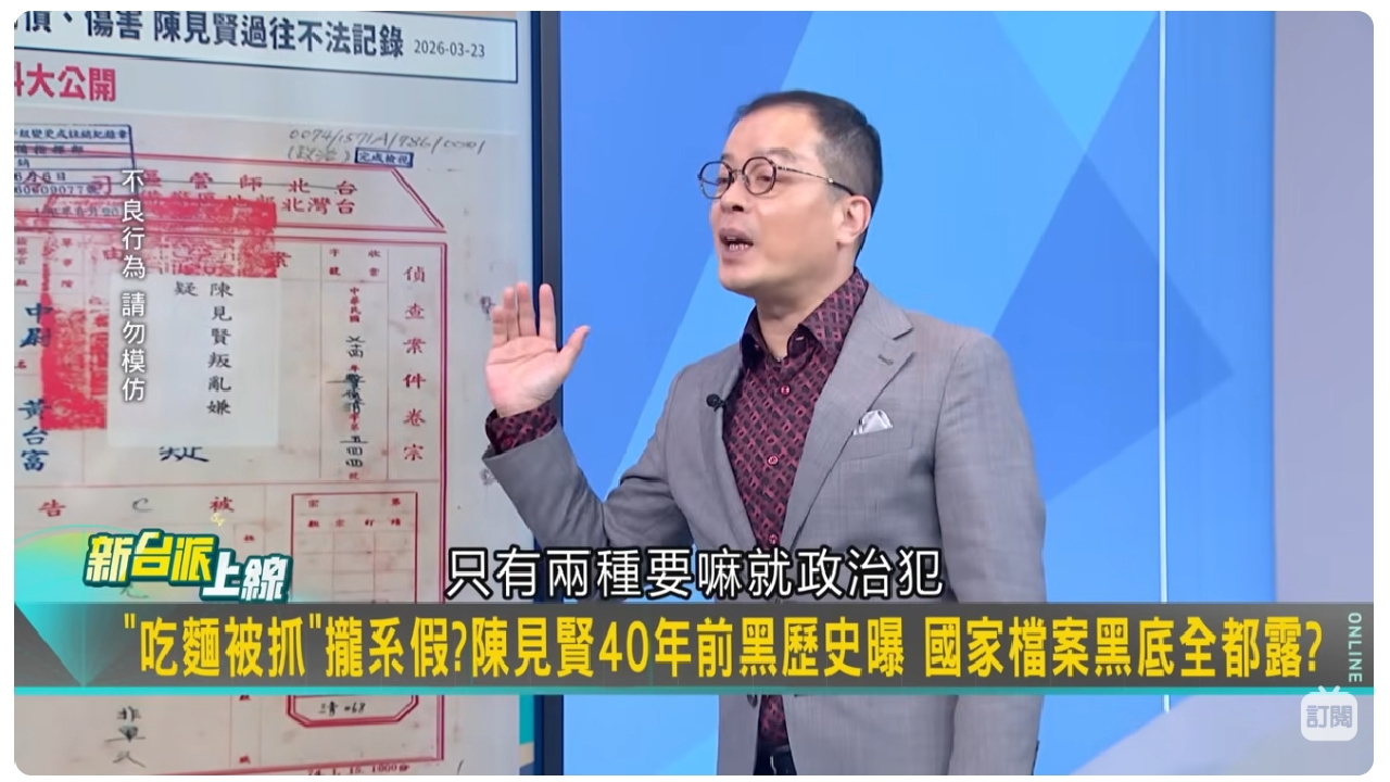 國民黨新竹縣長初選再掀波瀾。參選人、新竹縣副縣長陳見賢,近日因40年前涉及「一清專案」的相關檔案曝光,引發輿論高度關注。根據國家檔案局資料顯示,文件內容提及「詐賭」、「暴力討債」、「傷害」、「恐嚇取財」等紀錄,詳列其過去涉嫌的不法行為,與其過去對外宣稱「遭冤枉」、「在麵店吃麵被抓」的說法出現明顯落差,也使相關議題迅速成為政論節目討論焦點。
