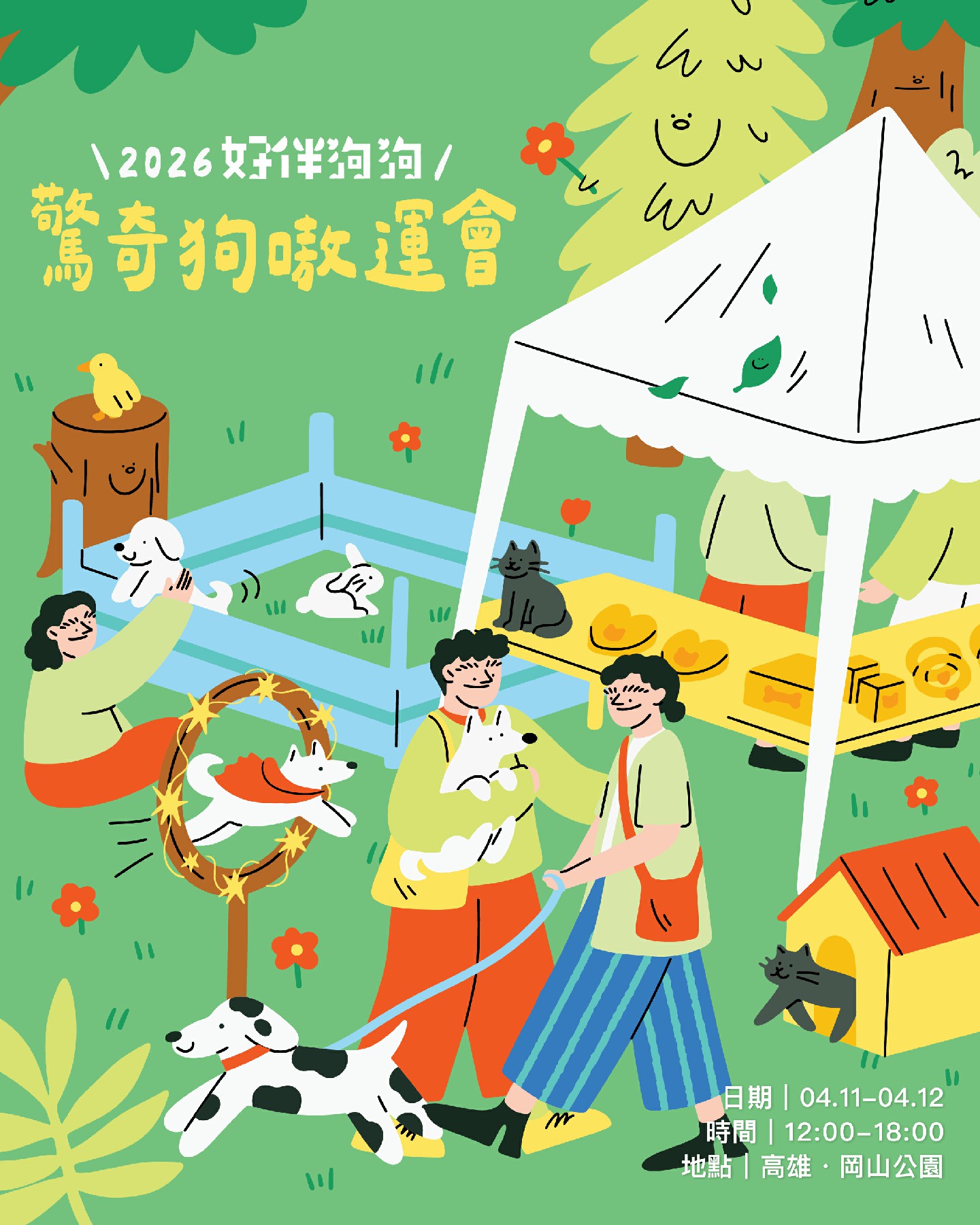 迎接國際寵物日,高雄市政府動物保護處將於4月11日至12日在岡山公園舉辦「2026高雄『好伴』驚奇狗嗷運會」,以顛覆傳統的趣味競賽形式,打造一場不比速度、只比默契與創意的萌寵嘉年華,邀請全台飼主攜帶愛犬共襄盛舉。