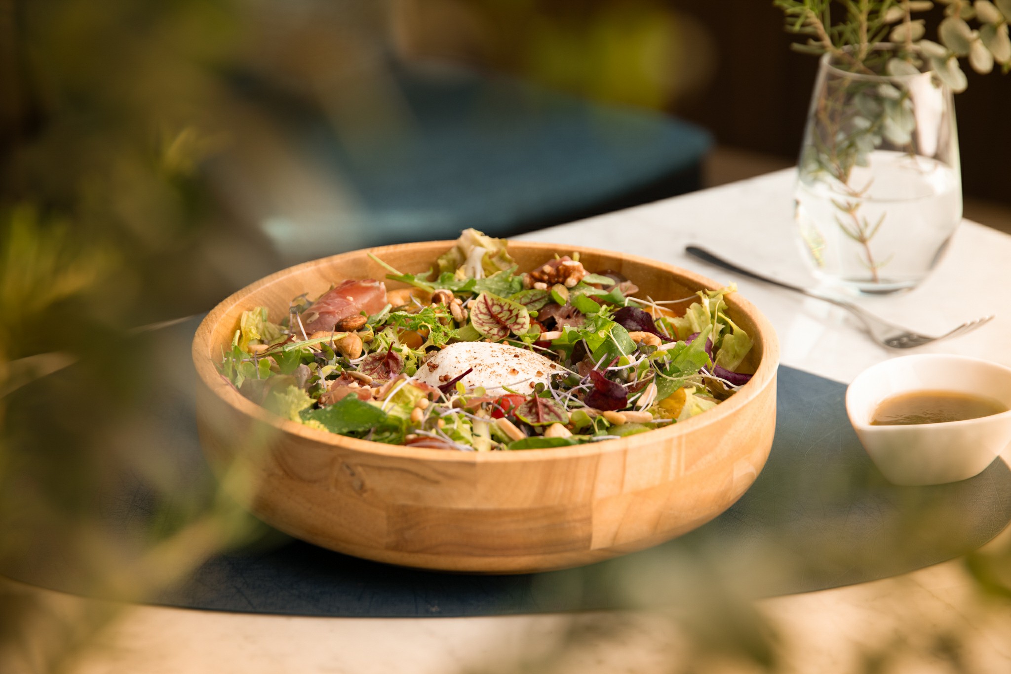 館內餐飲方面,由SEEDS大地義式餐廳主打「風味與永續並行」,從食材選用到料理設計皆強調在地連結與國際視野。早餐餐檯融合多元料理形式,包含海鮮粥、鹹豆漿等在地特色餐點,呈現豐富且細膩的味覺層次;同時導入廚餘轉化系統,將剩餘食材製成有機肥料回歸土地,實踐永續循環理念。