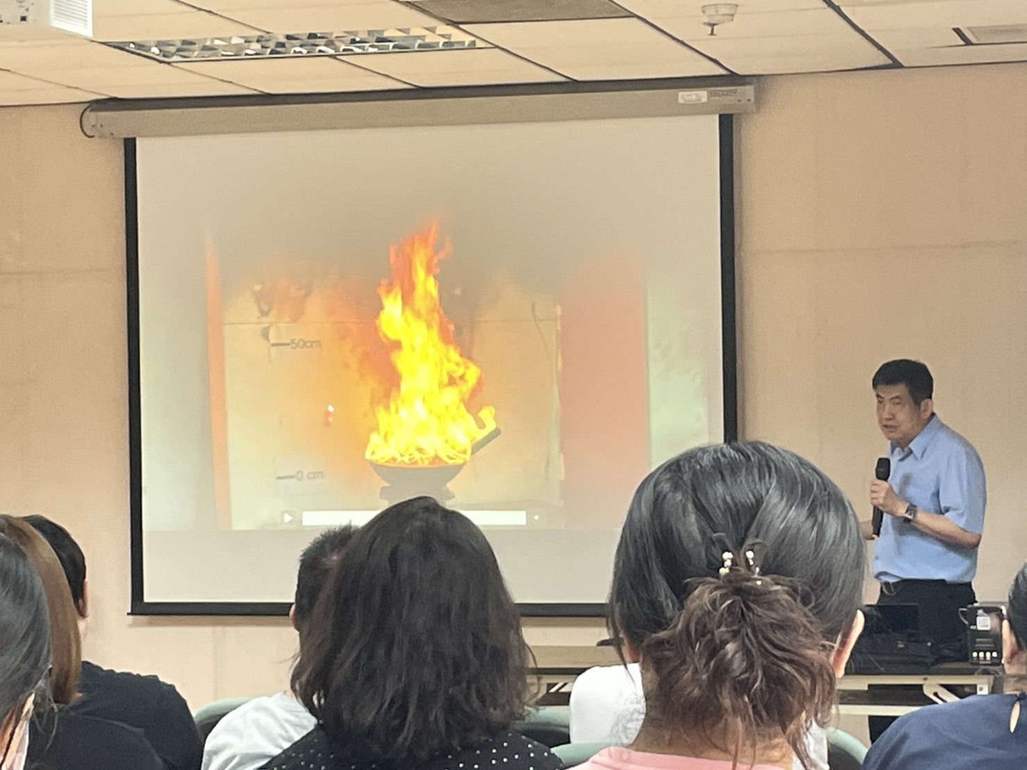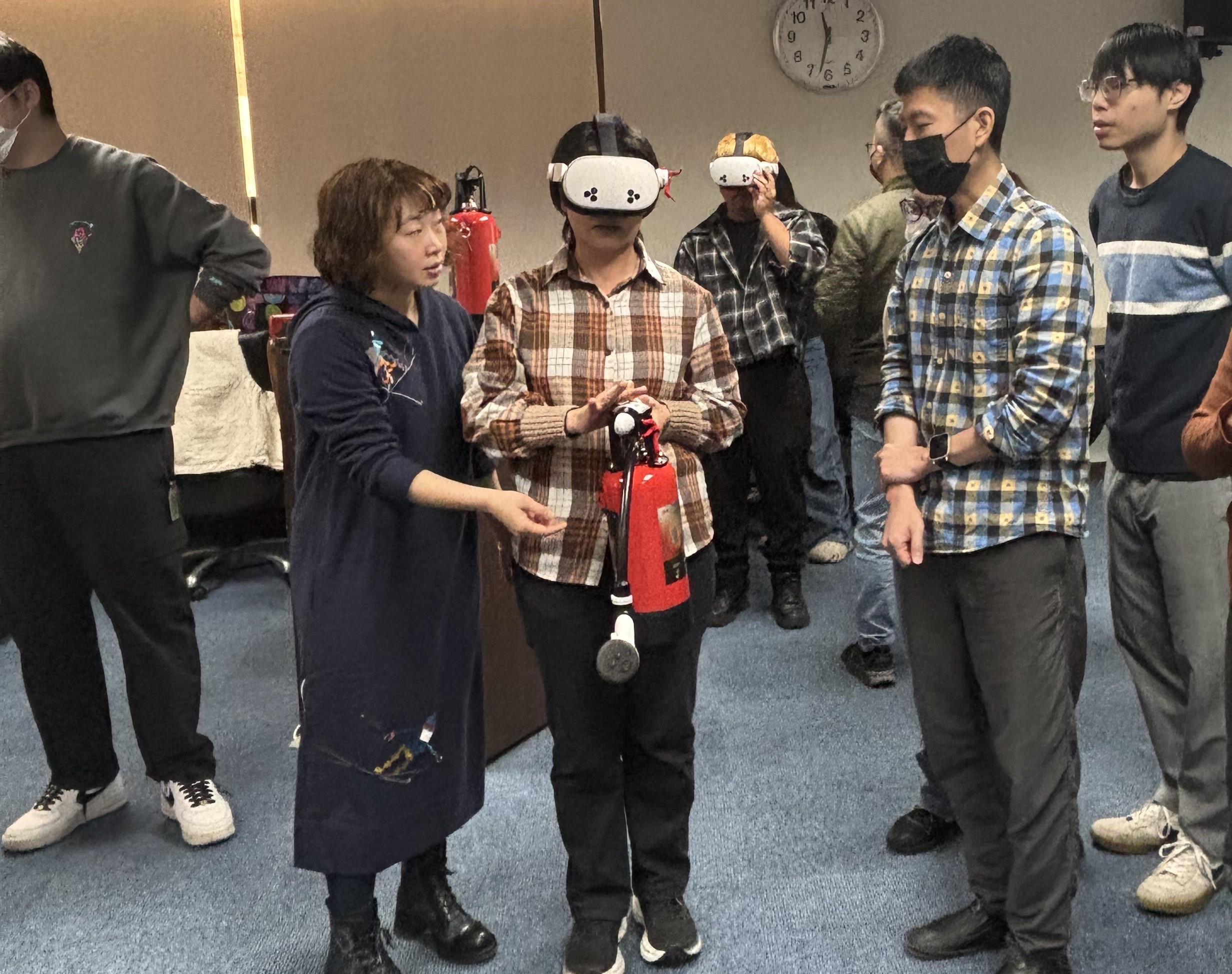 社會局長蔡宛芬表示,這套設備融合先進的虛擬實境技術,讓第一線人員學習正確滅火技巧,特別感謝永揚公司董事長張來川公私協力共同推動防災教育,社會局從1月份啟動種子人員培訓,並已經在無障礙之家及仁愛之家進行實地演練,設備發明人林金宏蒞臨現場指導人員,透過系統模擬的濃煙與火焰情境,人員能反覆練習並掌握滅火器的操作程序,搭配計分與任務挑戰的互動情境,也提升學習動機。