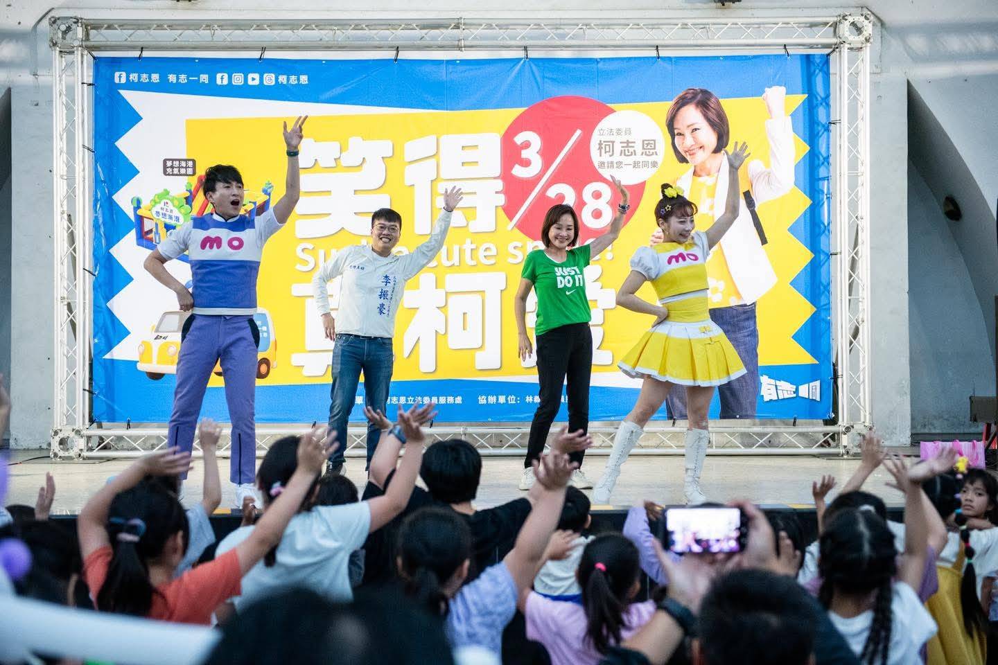 ↑圖說:柯志恩與MOMO家族在台上一起為小朋又帶動唱。(圖片來源:柯志恩辦公室提供)