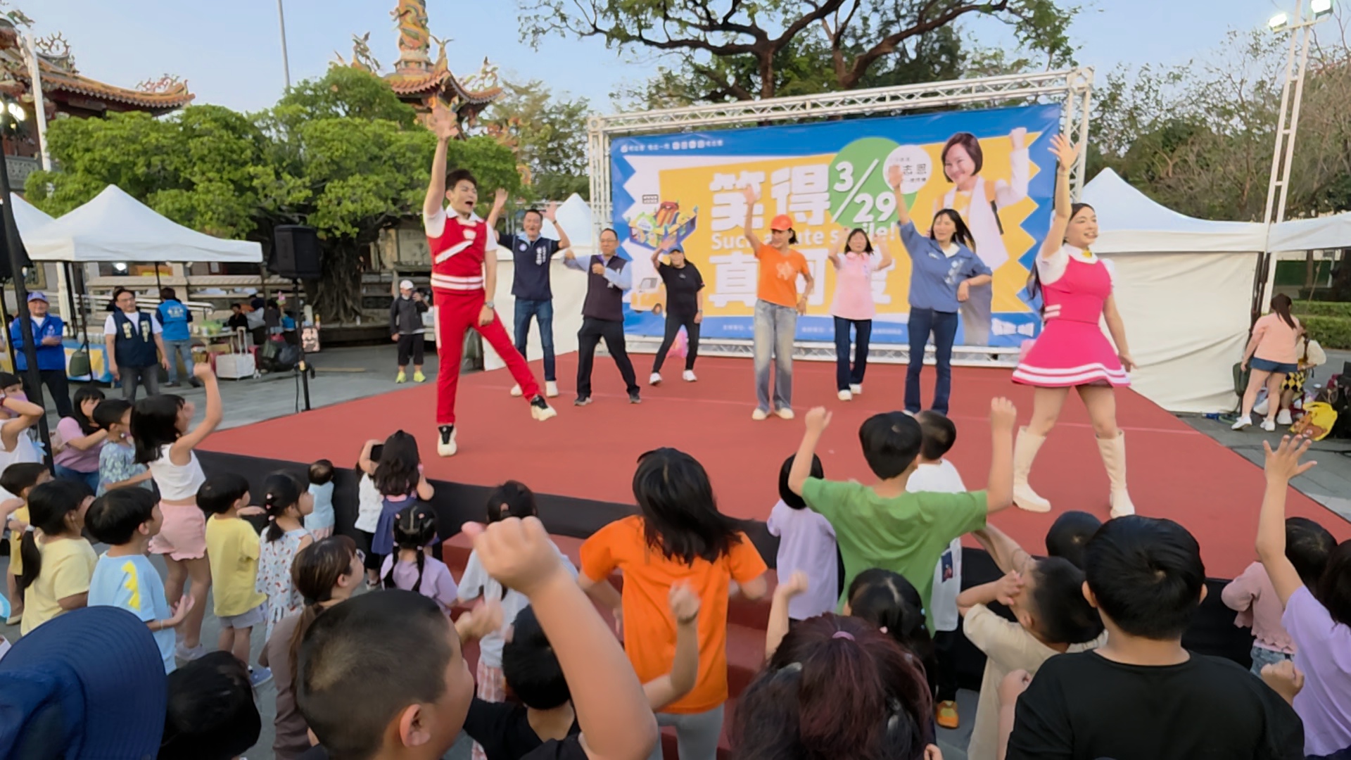 活動尾聲,柯志恩與在場民代一同登台,與MOMO家族帶領現場大小朋友唱跳互動,氣氛熱絡,也為活動畫下歡樂句點。