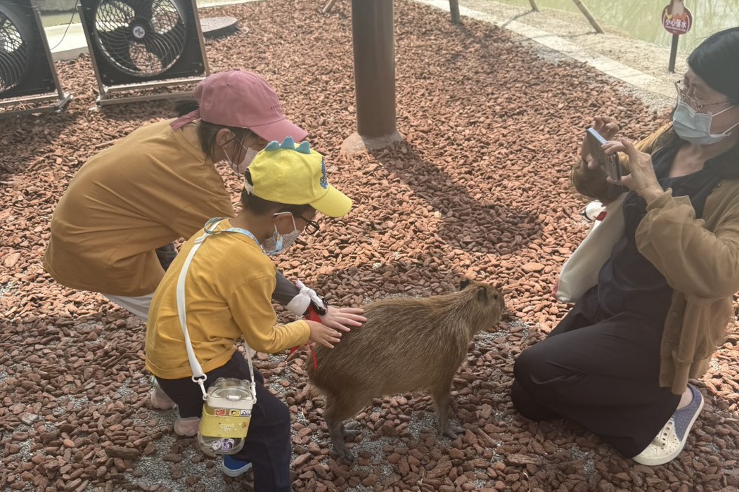 圖說:小朋友近距離撫摸水豚等可愛動物,並與動物留下合影。(圖片來源:雲天宮提供)