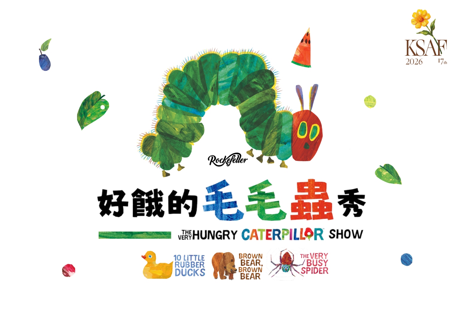 此外,改編自繪本大師Eric Carle經典作品的《好餓的毛毛蟲秀》,也將於4月18日至19日於同場地演出。此次版本集結《好餓的毛毛蟲》、《棕色的熊,棕色的熊,你在看什麼?》、《十隻橡皮小鴨》及《好忙的蜘蛛》等四部人氣繪本,以偶戲形式呈現色彩繽紛的故事世界,打造兼具視覺與情感的親子劇場體驗。