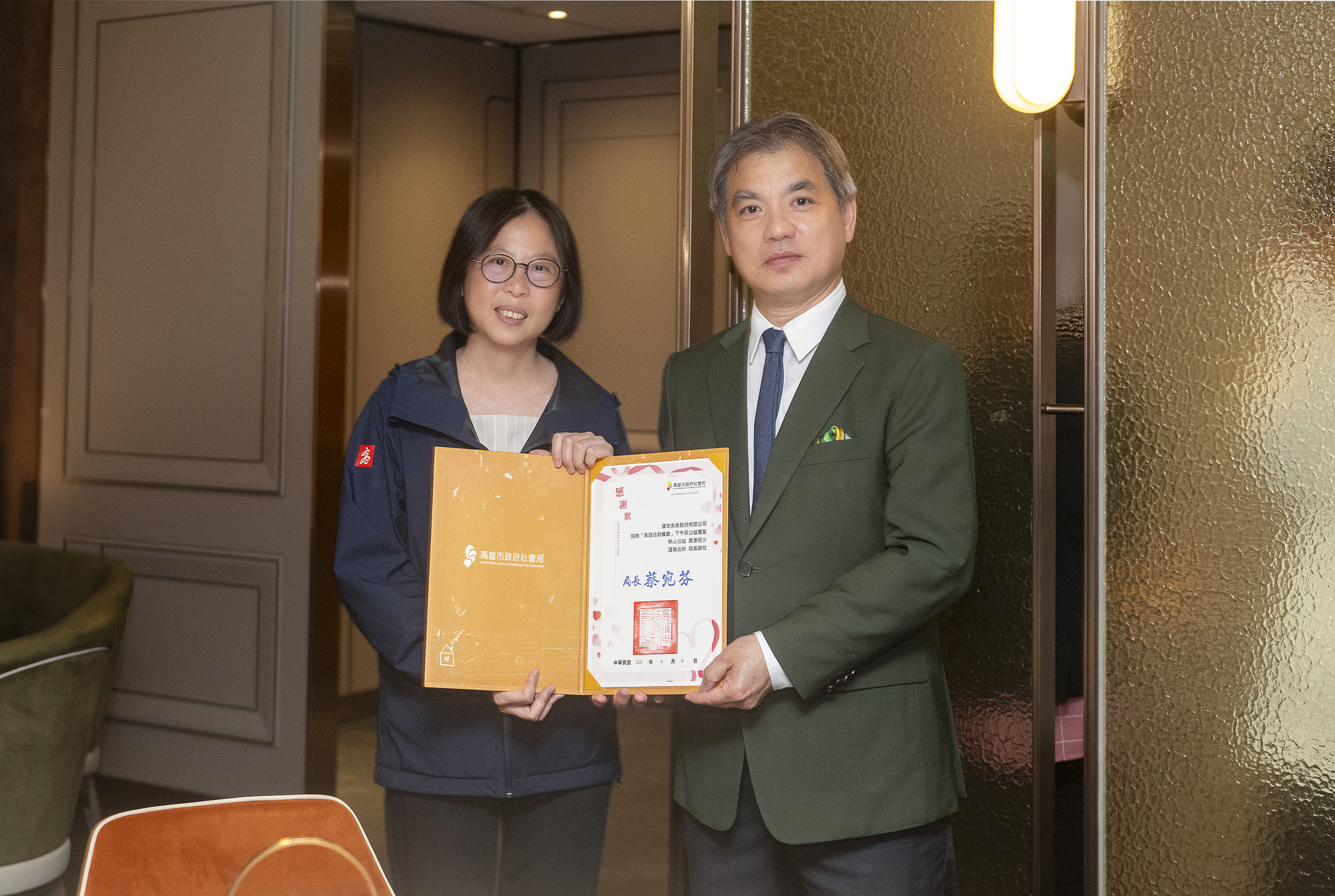 圖說:社會局蔡宛芬局長感謝漢來美食公益行動。(圖片來源:高雄市社會局提供)