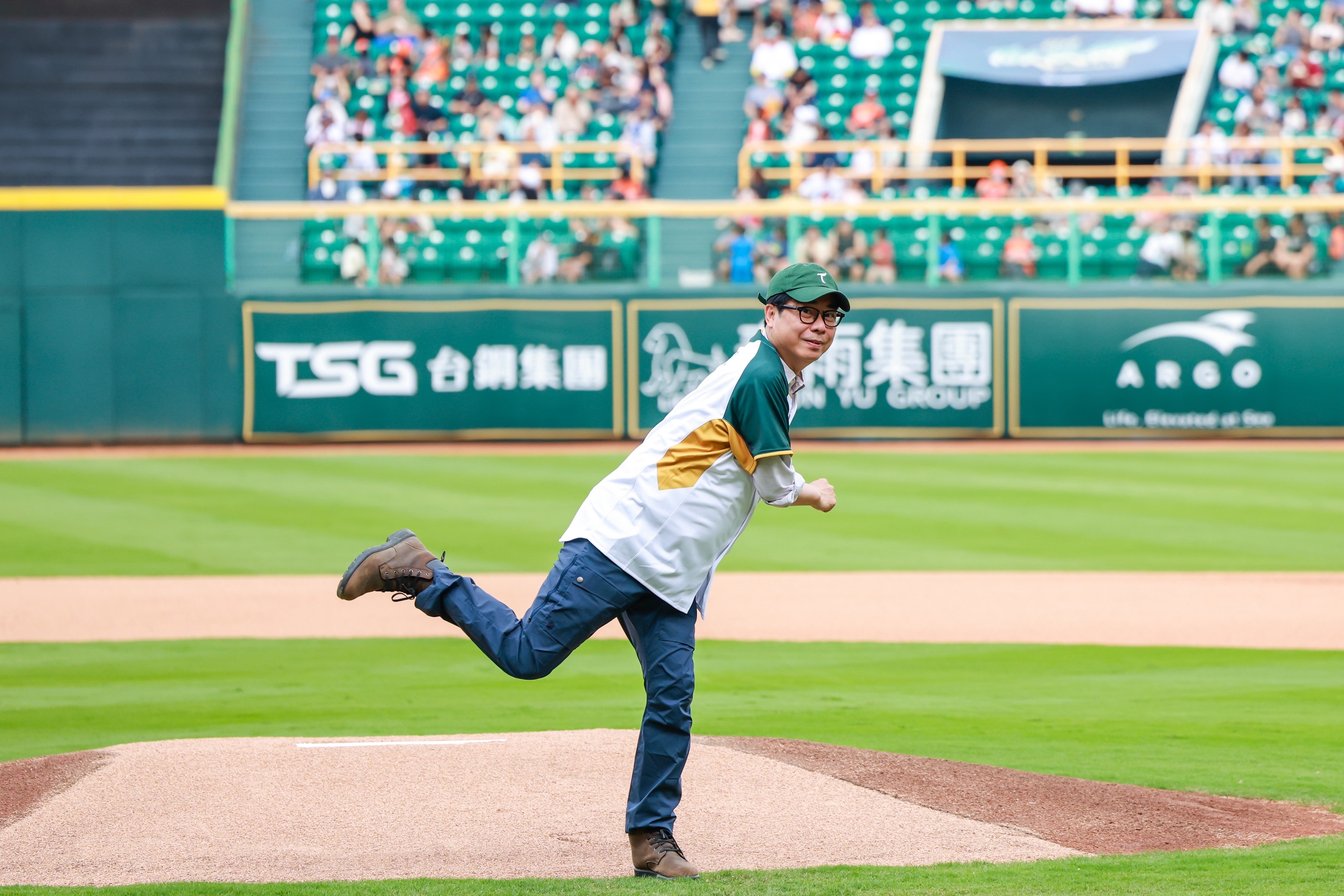 ↑圖說:台鋼雄鷹隊史第三年首戰4/6於澄清湖開打,陳其邁擔任開球嘉賓。(圖片來源:高雄市運發局提供)