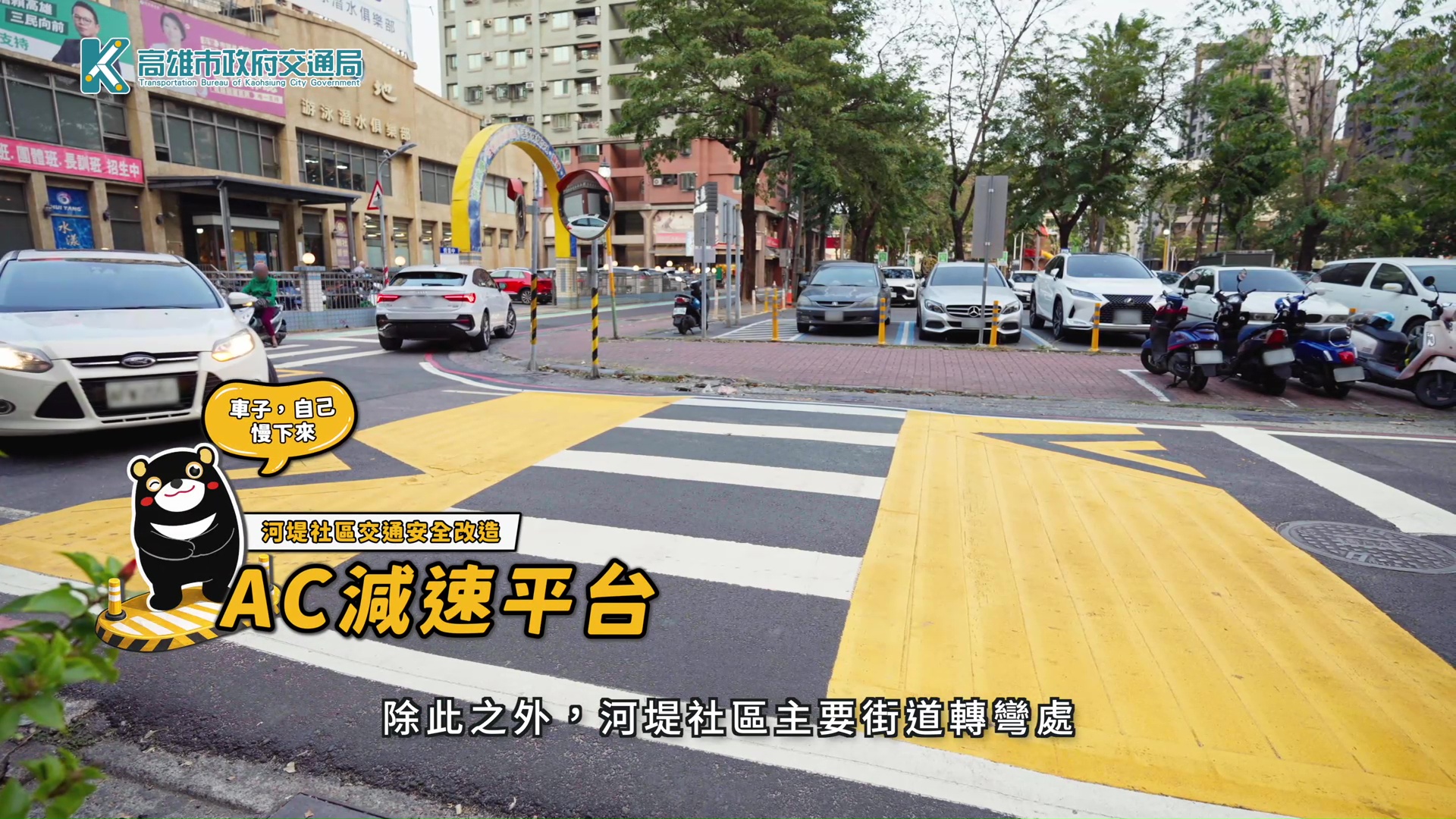 ↑圖說:AC減速平台, 減速效果良好,警示成效明顯。(圖片來源:高雄市交通局提供)
