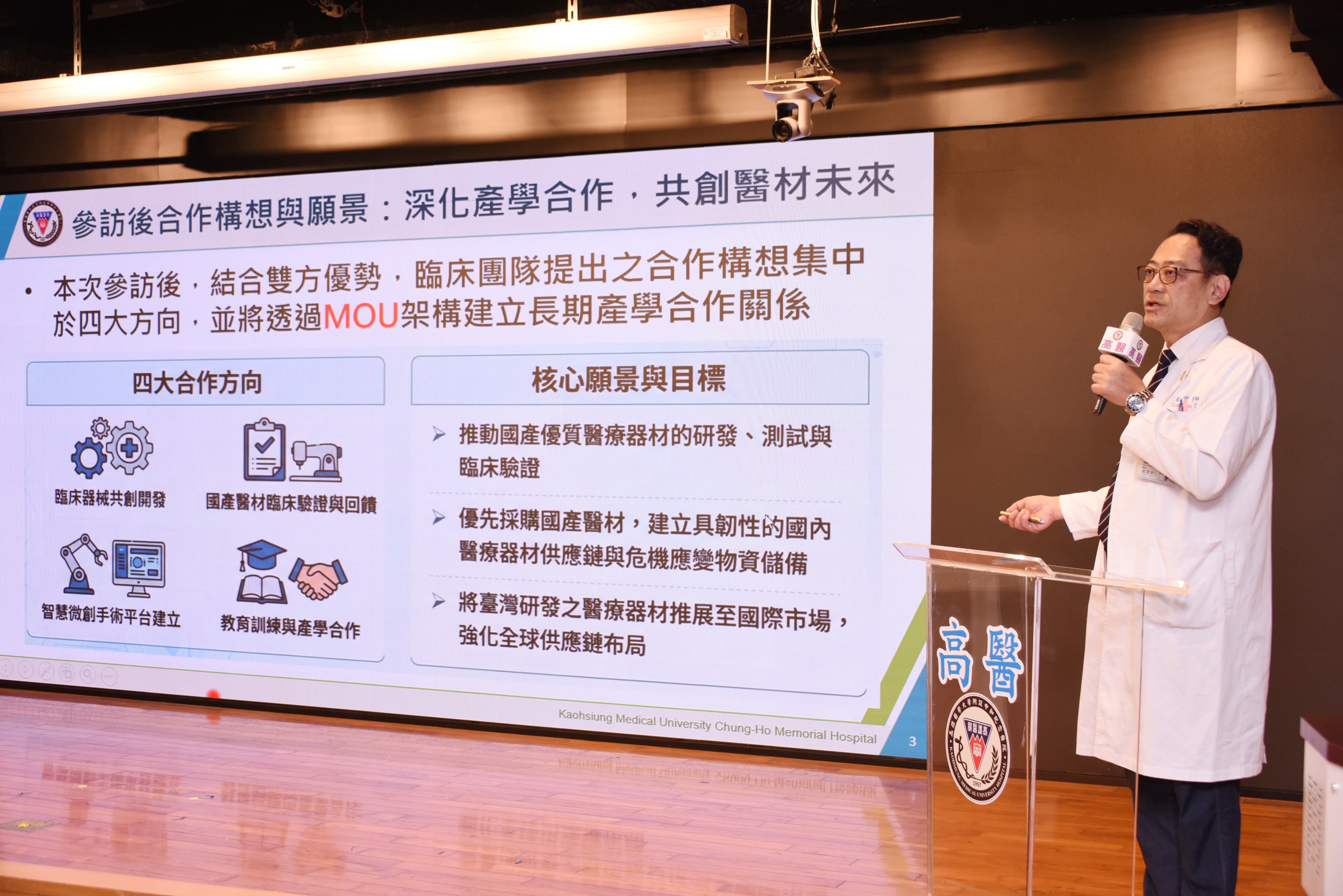 台灣先進陳榮健副總經理表示,公司具備從研發到製造的一條龍能力,尤其是腹腔鏡微創手術器械已在國際市場具備高度競爭力。此次與高醫合作,將建立完整臨床驗證與回饋機制,以實證數據驅動產品持續優化,加速國產醫材導入臨床體系。