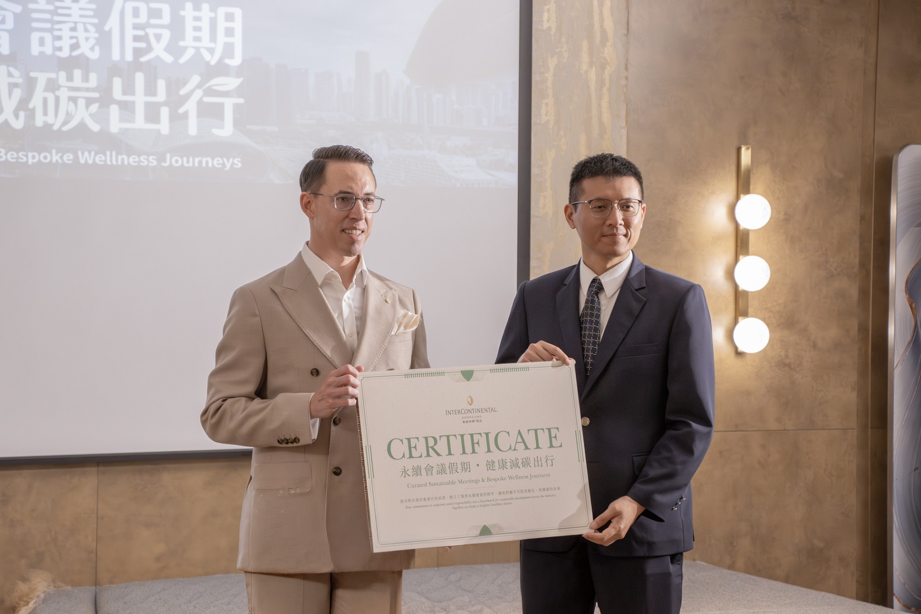 ↑圖說:會後核發「洲際永續會議專案證書」,詳實記載場次採用的綠色措施,讓每一場高效商務活動,轉化為具備公信力的永續實踐與品牌展示。(圖片來源:高雄洲際酒店提供)