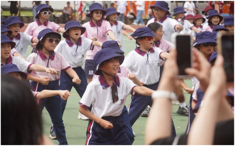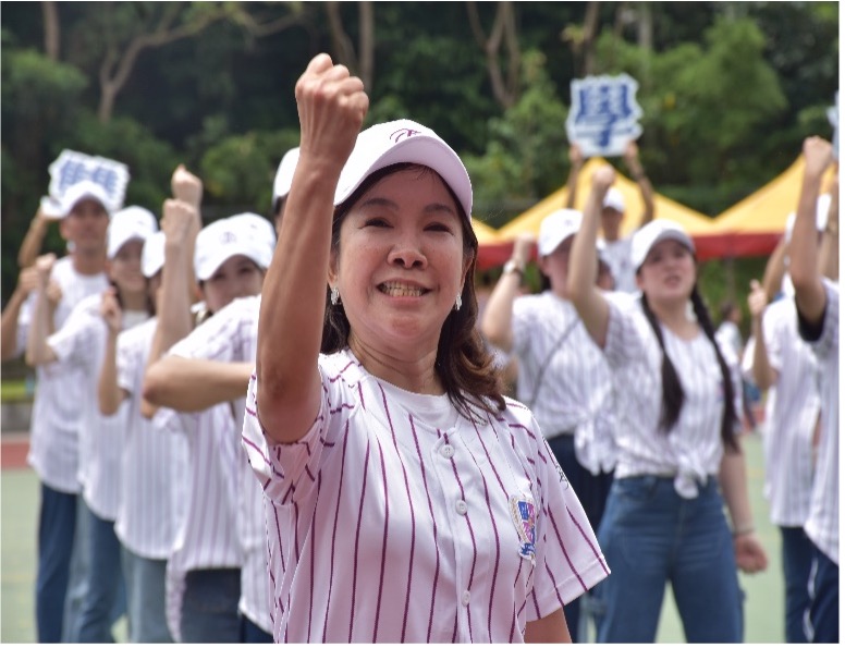 圖說:楊奕蘭董事長與教職員團結一心演繹”Team Taibei”舞蹈。圖/泰北高中提供
