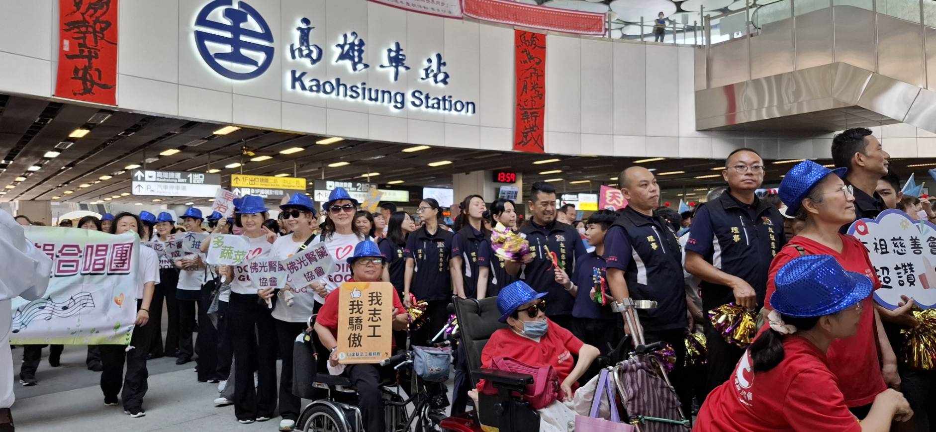 圖說:高雄串聯國際慶祝全球行善日20週年,19日在高雄火車站中圓廣場舉辦「台灣領航與世界同步」慶祝活動,(圖片來源:高雄市社會局提供)
