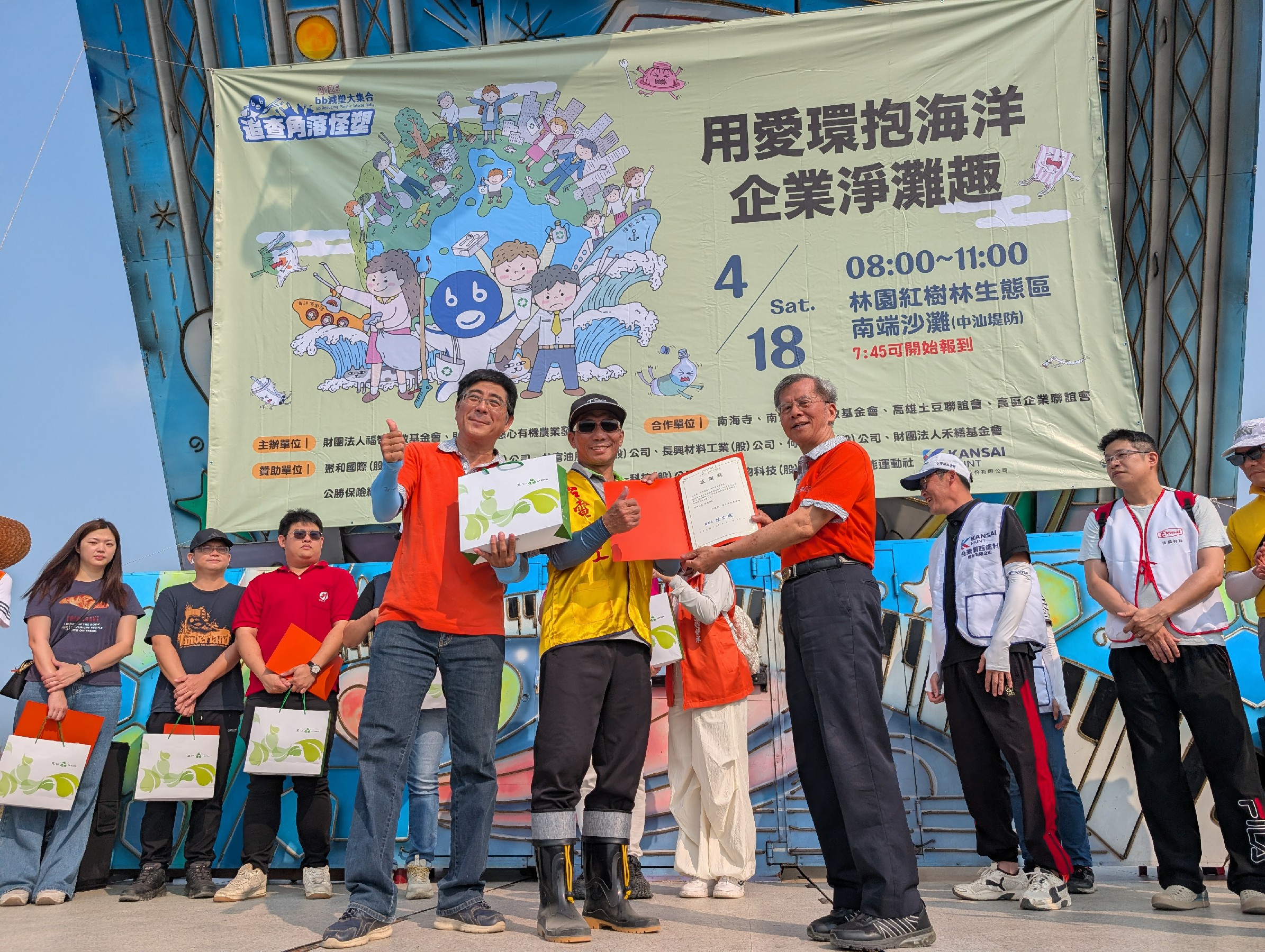 活動當天,台電同仁頂著烈日全副武裝投入淨灘作業,沿岸細心撿拾垃圾,展現高度行動力。有參與同仁表示,過去多以個人名義參與淨灘,今年能與同事一同投入,更具凝聚力與意義。主辦單位也於現場頒發感謝狀,肯定台電高雄區處的支持,並期盼持續透過淨灘行動提升全民環保意識,攜手守護海洋永續。
