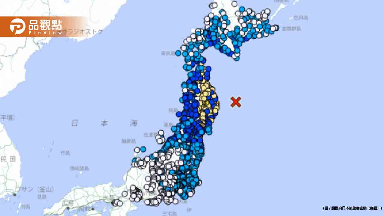 日本20日下午4時52分,三陸近海發生規模7.7強烈地震,青森、岩手、宮城等地觀測到「5強」震度,連東京都有明顯感震。
