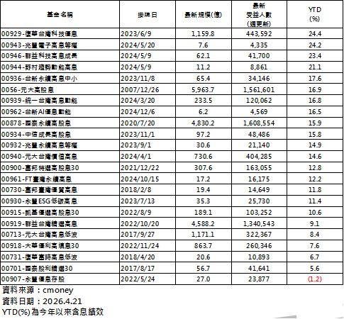 主動國泰動能高息(00400A)在4/9掛牌後,不到兩周規模成長83.79%,突破150億元(截至4/21)