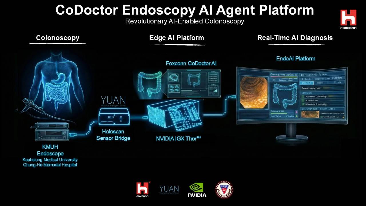 台灣癌症時鐘持續快轉,平均每4分就有1人罹癌,其中大腸癌位居前二名。為讓AI人工智慧成為臨床決策的即時助手,高雄醫學大學附設中和紀念醫院(以下簡稱高醫)與鴻海科技集團(以下簡稱鴻海)合作,打造出先進的智慧內視鏡,採用輝達 NVIDIA IGX Thor 工業級平台,是目前全球領先的系統之一。此系統前不久於美國舉行的 NVIDIA GTC 2026 上,成功將台灣的智慧醫療技術推向國際頂尖舞台。