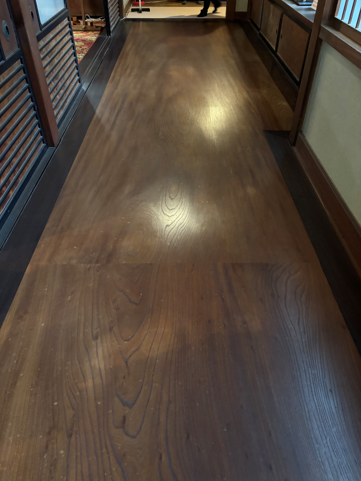 ▲毛利博物館的第一道走廊地板,由台灣產櫸木板組成。 圖:向日遊/提供