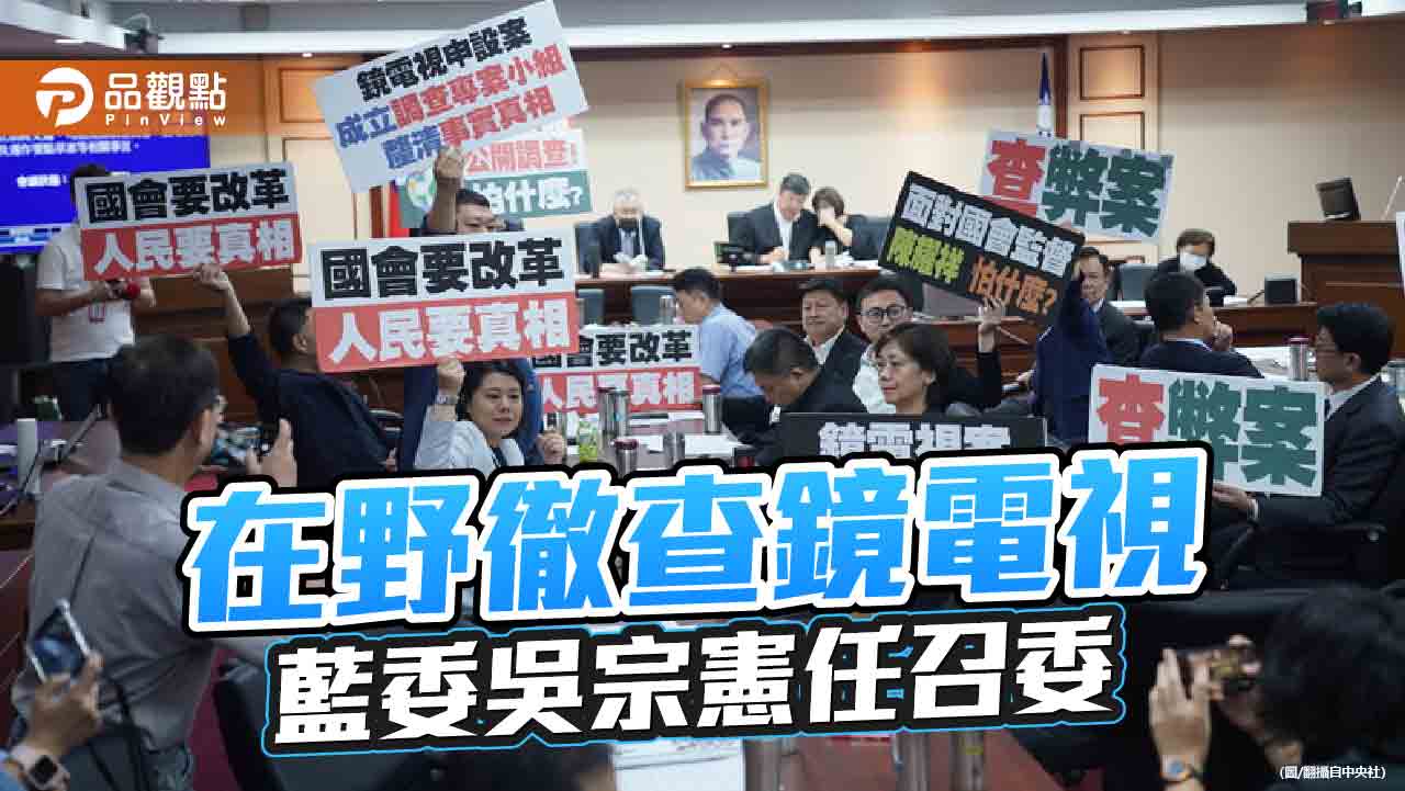 在野黨聯手徹查鏡電視案,3日上午交通、司法及法制委員會聯席會議討論成立「鏡電視調查專案小組」,推舉國民黨立委吳宗憲擔任調查小組召集人,遭執政黨猛批「對媒體下手」。鏡電視發布4點聲明指出,立法院針對1家新聞媒體成立3種調查組織,實為史上僅見,侵害新聞自由斧痕鑿鑿。