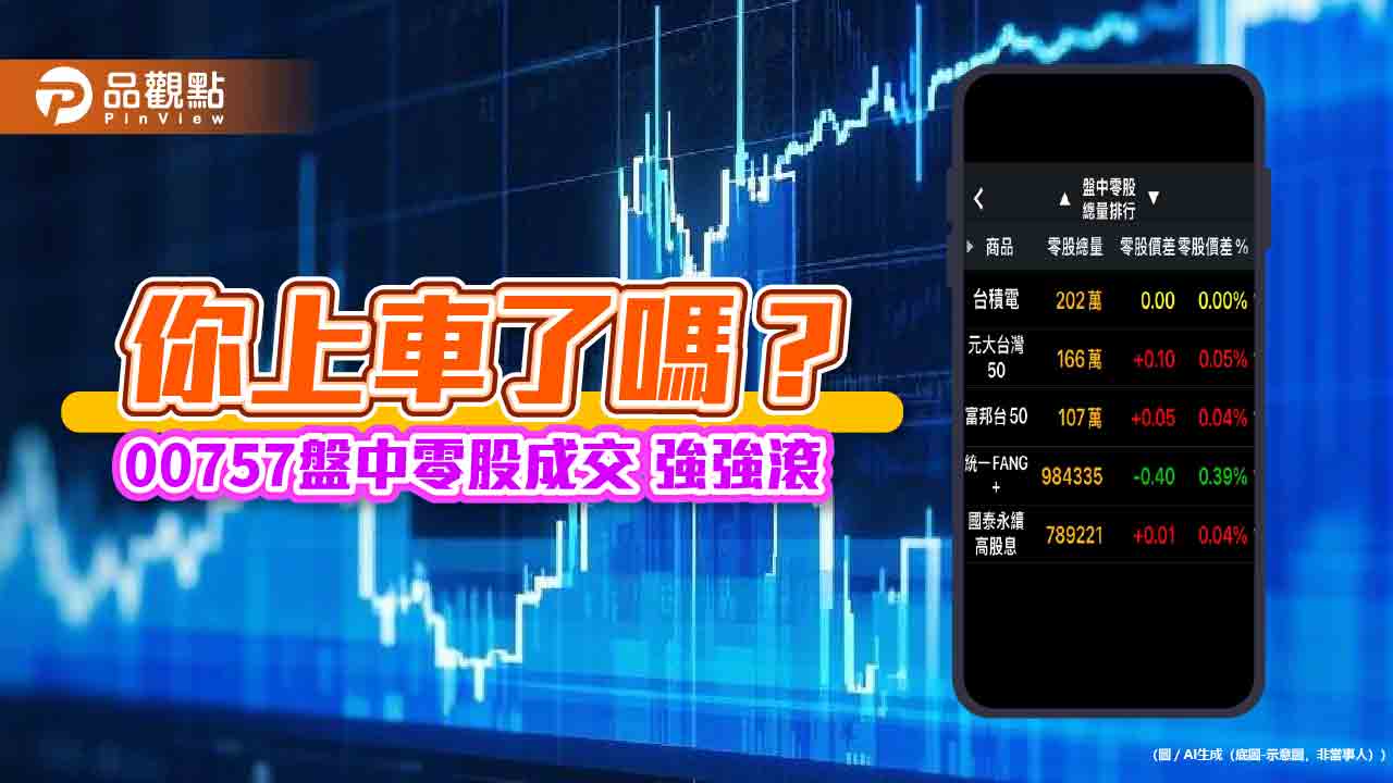 00757盤中零股衝出市場第四高!爆近百萬股天量 海外ETF成交王