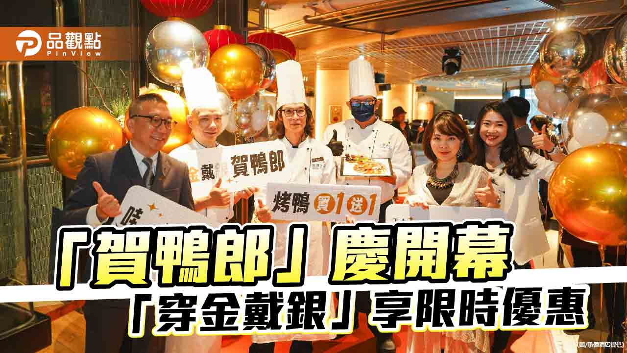 承億酒店全新「賀鴨郎」粵菜烤鴨中餐廳,由來自港澳的雙主廚帶領團隊,端出一道道正宗港粵料理,26日承億賀鴨郎也在熱烈氛圍中正式開幕並舉行開幕活動,現場湧現排隊人潮,許多民眾共襄盛舉「穿金戴銀」享烤鴨與港點買1送1優惠。